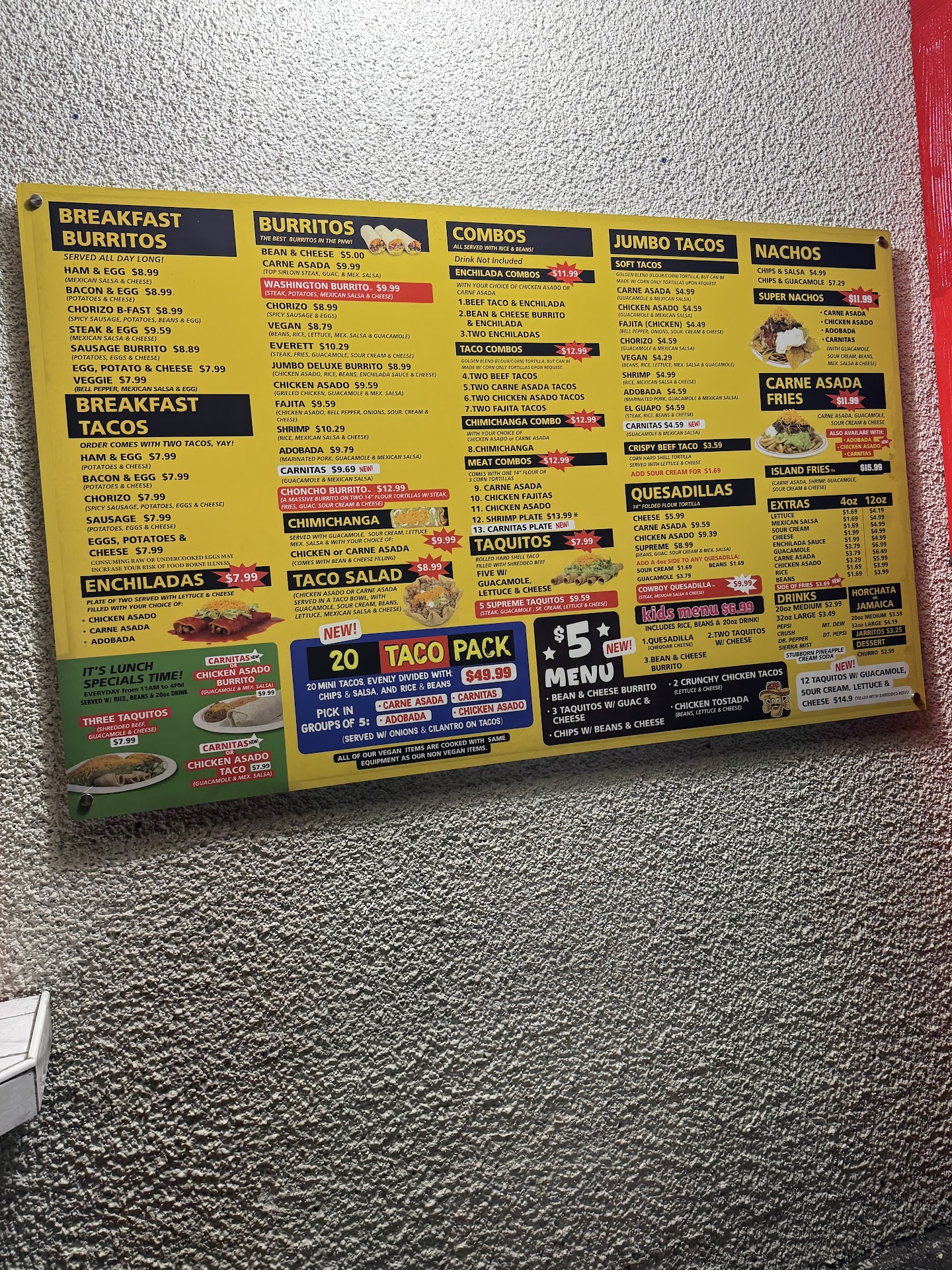 Read moreNot to be one of those people but… being from San Diego, I do struggle to stomach the vast majority of Mexican restaurants in the greater Seattle area. Too frequently they cater to the unseasoned crowd who I guess are either intimidated by words like “pollo” or maybe even can’t understand that it’s chicken. Corner stands and trucks are where you usually look around here for hard working cooks of more authentic and quality food. But as far as Mexican spots around here go, Washington Burrito is pretty good. I can forgive the fact that they call a California burrito a “Lynwood burrito” simply because it’s done reasonably well for SD standards. So far the breakfast burritos have been the most consistent, and again at least reach a bar where I’m satisfied and don’t feel like I’ve got a burrito sized hole in my life. To be fair to some of the criticisms, they have occasionally wavered in terms of quality in the past but I’m hoping they can figure out the kinks and get things running more smoothly because if you go on a good day, it’s pretty solid. I can’t speak to employees being rude or not understanding me though, I’ve never seen that and wonder if these are people just wanting a problem to complain about. Beyond that, it’s nice to have a 24 hour spot around. Give it a shot. It’s nothing fancy but it’s not...