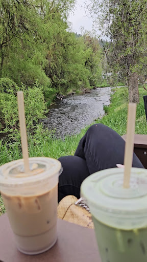 The barista expertly crafted a couple of delicious lattes for us, and I also indulged in a gluten-free chocolate chip scone—both were excellent. Though the crisp air kept me indoors, I noticed a few bundled-up patrons savoring their coffee by the creek, adding to the serene ambiance.