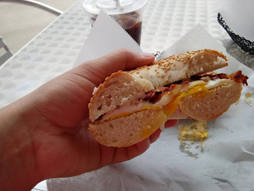 I ordered the Evesham and found hair in my cream cheese. The cream cheese was applied terribly on one side of the bagel. Whoever made it didnāt even bother to spread it throughout the bagel. The same thing with the onion: It was slapped on the center of the bagel, and they didnāt even bother to spread it around. The salmon was barely there. I had to stop eating once I saw the hair in my food. Not surprise after watching how things were prepped.