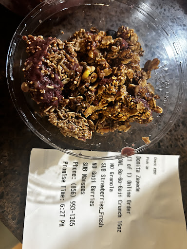 Was very quickly helped by a lovely person named I believe was Gianna! Very polite and happily helped me with my order. However, I believe it was either the assistant manager or the general manager was giving a dirty look the entire time, as they were wearing a different uniform from the other staff. They had long black hair anda are Indian. I openly present as a queer person and I do NOT appreciate when people stare at me for my appearance, especially not when I'm trying to purchase myself a smoothie. Call it a sense, but as someone who has been treated poorly because of this, I can tell when someone is... a bit unsavory.