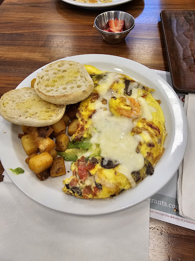 Read moreThe only reason I am giving this place two stars and not one is because the food was pretty good. We went today, 11/13, and it was a busy Sunday morning. We were told the wait was going to be 10-15 minutes for a table but ended up waiting about 35 minutes, totally fine they're busy. We then went to our table and the last tip was still on the table, cash and signed receipt. It's weird to seat a table when the last one's tip is still there. The menus we were handed were dirty and scribbled on in crayon. Additionally the water pitcher our table was given was dirty, having hardened egg on the outside and my cup was dirty. I asked for a new cup, and didn't even realize the outside of the pitcher was dirty until we had already drank from it. The waitress refilled the dirty one and then proceeded to hand it back, we just didn't drink anymore water. Additionally some of our silverware was dirty and when we got our drinks, only after our food was brought there was a huge lipstick stain on the outside of the mug. I just sent the drink back and didn't even bother getting another. The mug had to go through the dishwasher, the person making the drinks, and our waitress and it still came out with the huge lipstick stain. Not only were we not offered an apology at any point from the server, someone was going around to each table asking how everything was, I'm assuming it was the manager, and conveniently skipped our table after all of the dirty dishes we sent back. Needless to say we will...