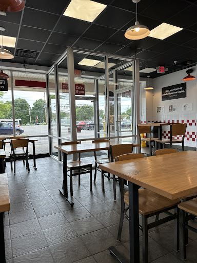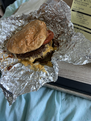 Read moreThis is not the quality that I know for a 5 Guys burger. This is my first time coming to this location as I'm new to the area. I can tell you that they take a long time to make your food. Then the bun of the burger is cold, smashed, and full of grease/condiments. After that the burger seems to arrive to me in store semi cold, even though they just made it in front of me. On top of it they put way too much cajun seasoning on the fries to the point that it becomes an unbearable amount of cajun to eat.