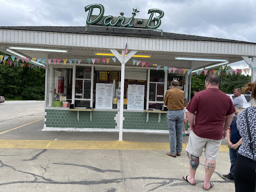 Y'all, if you're ever passin' through town, you gotta stop by the Dari B Drive In! This little spot serves up some of the best ice cream I've ever had. Now, don't expect any fancy seating 'cause there ain't much—just a lone bench if you're lucky, so most folks end up standin' around to enjoy their treats.