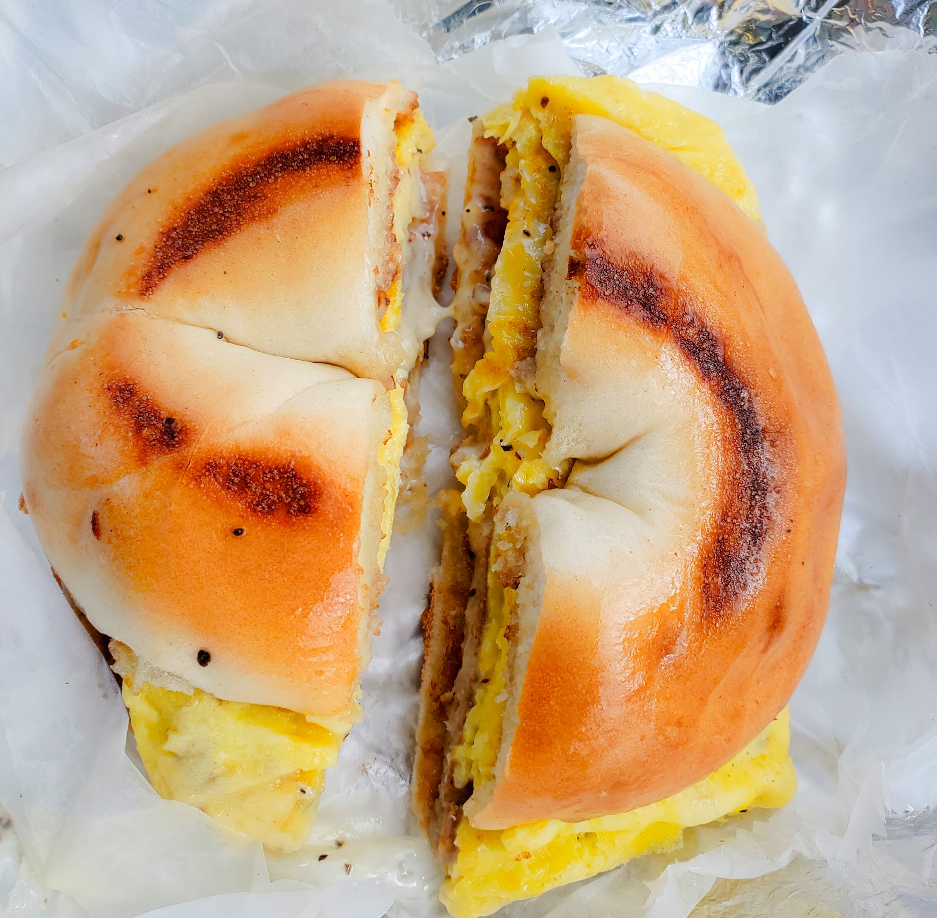 I came in here really quickly to try out a breakfast sandwich and man was I in for a surprise. You can easily get a sandwich at the Dunkin right in front of them, but why not treat your palate to something with more sustenance, was my thinking. I came in and was greeted warmly and professionally and my eyes were drawn to the Good Egg. The Good Egg has eggs, American cheese, bacon, hash browns, and hot honey on a bulkie roll. I got myself a cranberry grape Minute Maid and that completed my meal. I sat down and started to dig in. When I did, I was immediately happy with the decision to stop here rather than the Dunkin across the way. I finished my sandwich and was completely satisfied. Great...