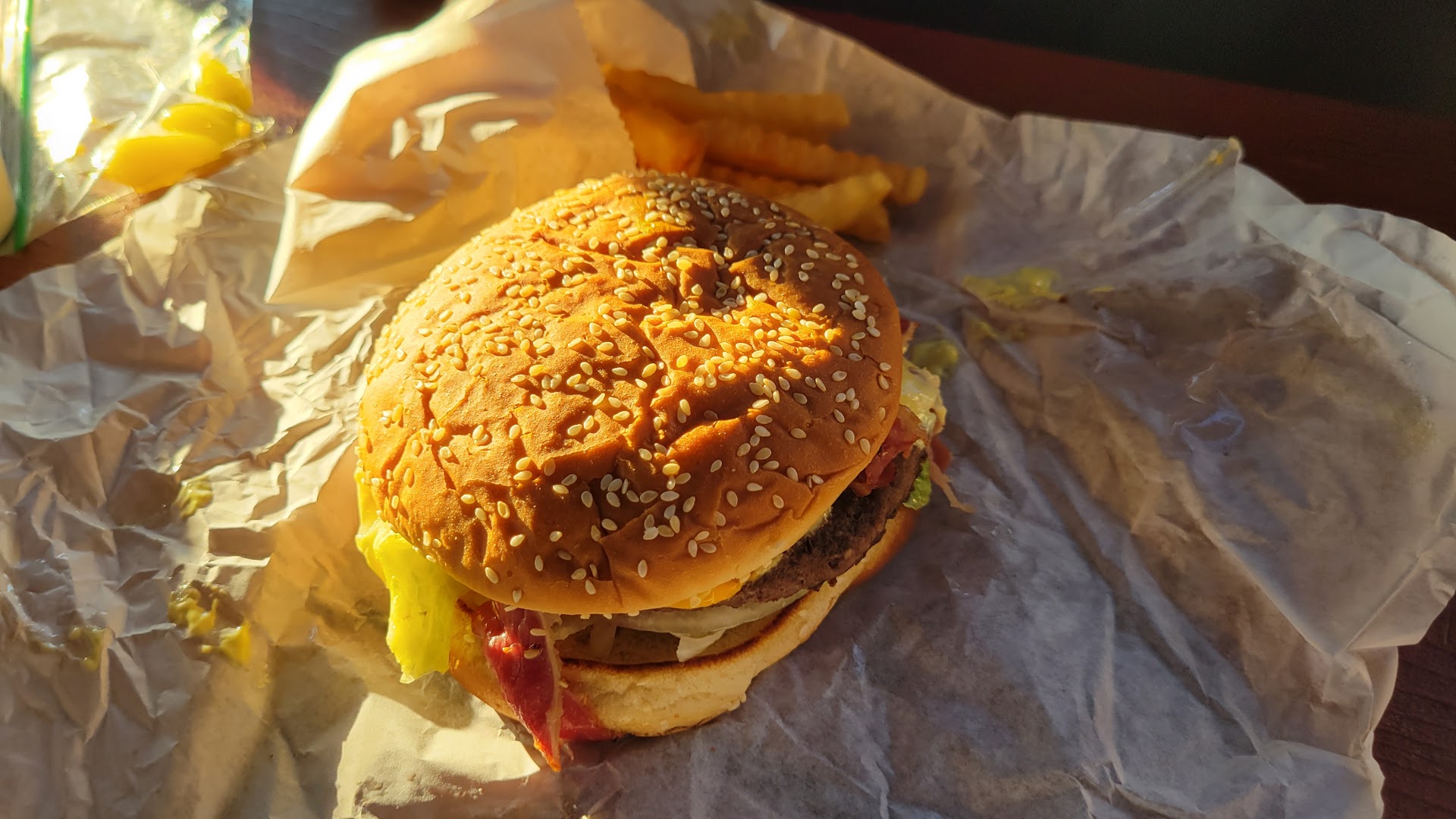 Read moreI had the chicken strips with fries. They didn't have much flavor. My fiance said his burger was ok. He had a bacon cheeseburger. The bacon, did not look like bacon, more like pastrami. He said the burger was nothing special. The rootbeer float was good, hard to go wrong there. We really wanted to like this place, seems to always have people, so maybe we'll try it again some time and give it a second chance. The employee that helped us made us feel like we were bothering her when we walked up, maybe she was having a bad day. I'll update review if things change if we...