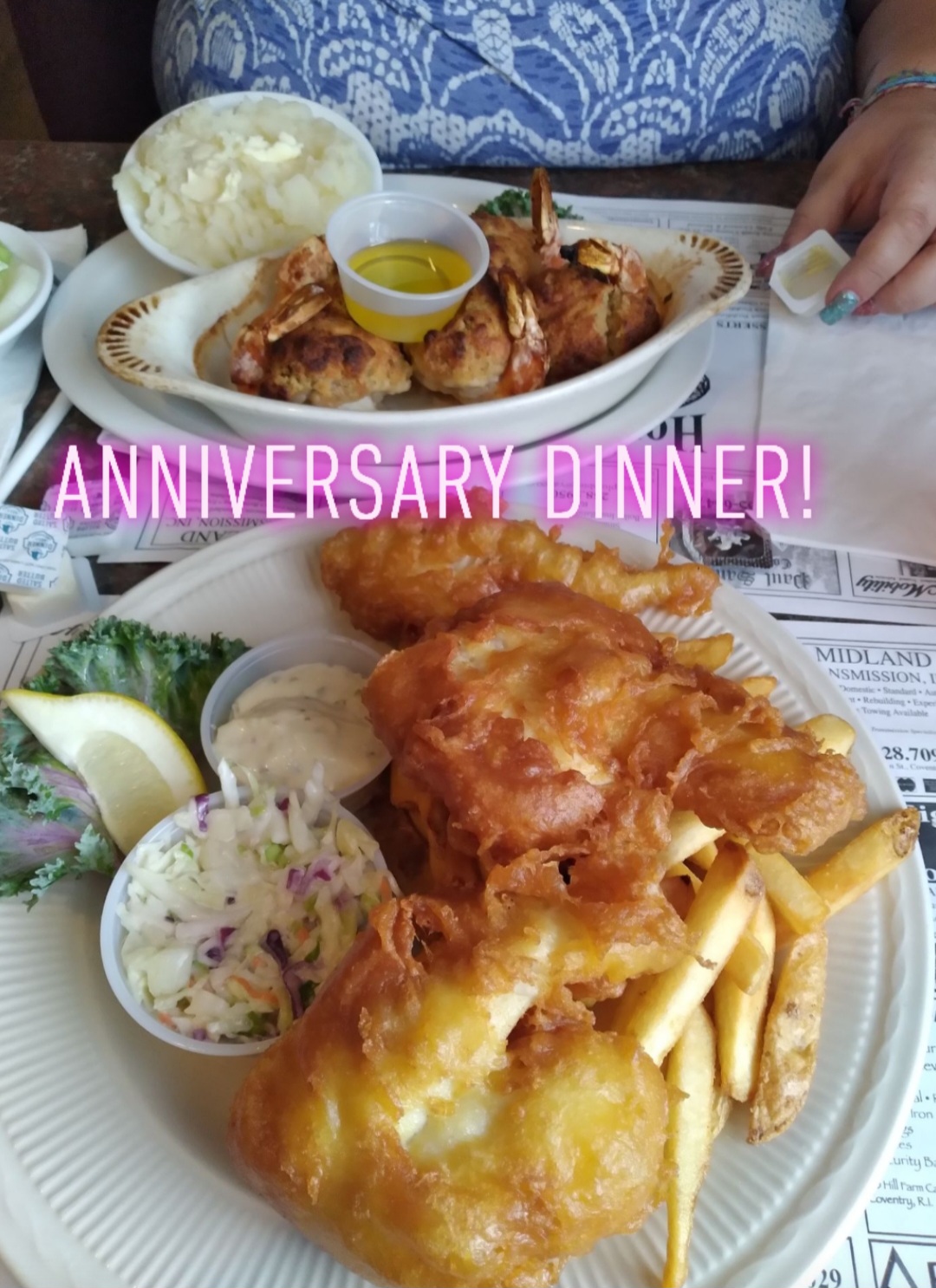 I ordered the pasta Primavera and my wife had the Friday dinner special, fried clams dinner. Neither one of these dishes were very good. The assorted seafood in the pasta Primavera looked and tasted like it came out of a freezer bag and the pasta was overcooked. The fried clams were rubbery and slightly overcooked as well. After a few bites, neither one of us could finish. Most disappointing was the fact that we had assumed that since the apps were so good on past visits, we expected to be blown away by the dinner menu - BIG mistake. We expected fresh seafood in a Rhode Island restaurant and didn't get that. My advice is to go for the drinks and apps only until they get their menu...