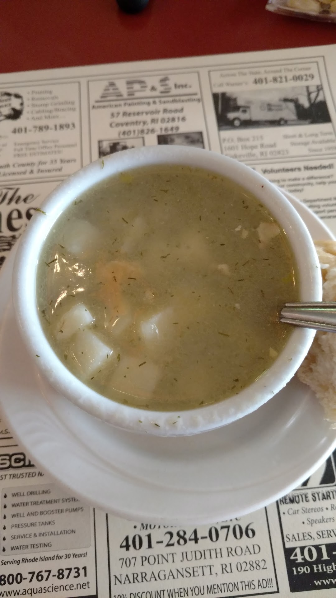 Read moreI will admit I was trying to find some places to do while waiting for a club event. Was trying to think of places I’ve been by while going to URI (University of Rhode Island) and this place popped up in my brain and it seems to be open for long periods of time probably due to having a bar. A rare feat in this area of Rhode Island. Anyway pulled in on a pretty empty day. I like how it looks like an old timer barn. Waited a bit, got a booth to myself and read the menu. There a lot of options and it has seafood which is neat. I didn’t feel like anything too fancy so I just got a Turkey sandwich. Food came out in less than 10 minutes which is rare. It was pretty good. Tasted like I was back home. Finished that, and got an Oreo ice cream cake or pie slice. Anyways that part was awesome. Only took me like 30-40 mins to eat a full meal and dessert. Nice place and oldschool farming environment vibes. Wasn’t too expensive either. Might be good place to stop by again when I’m...