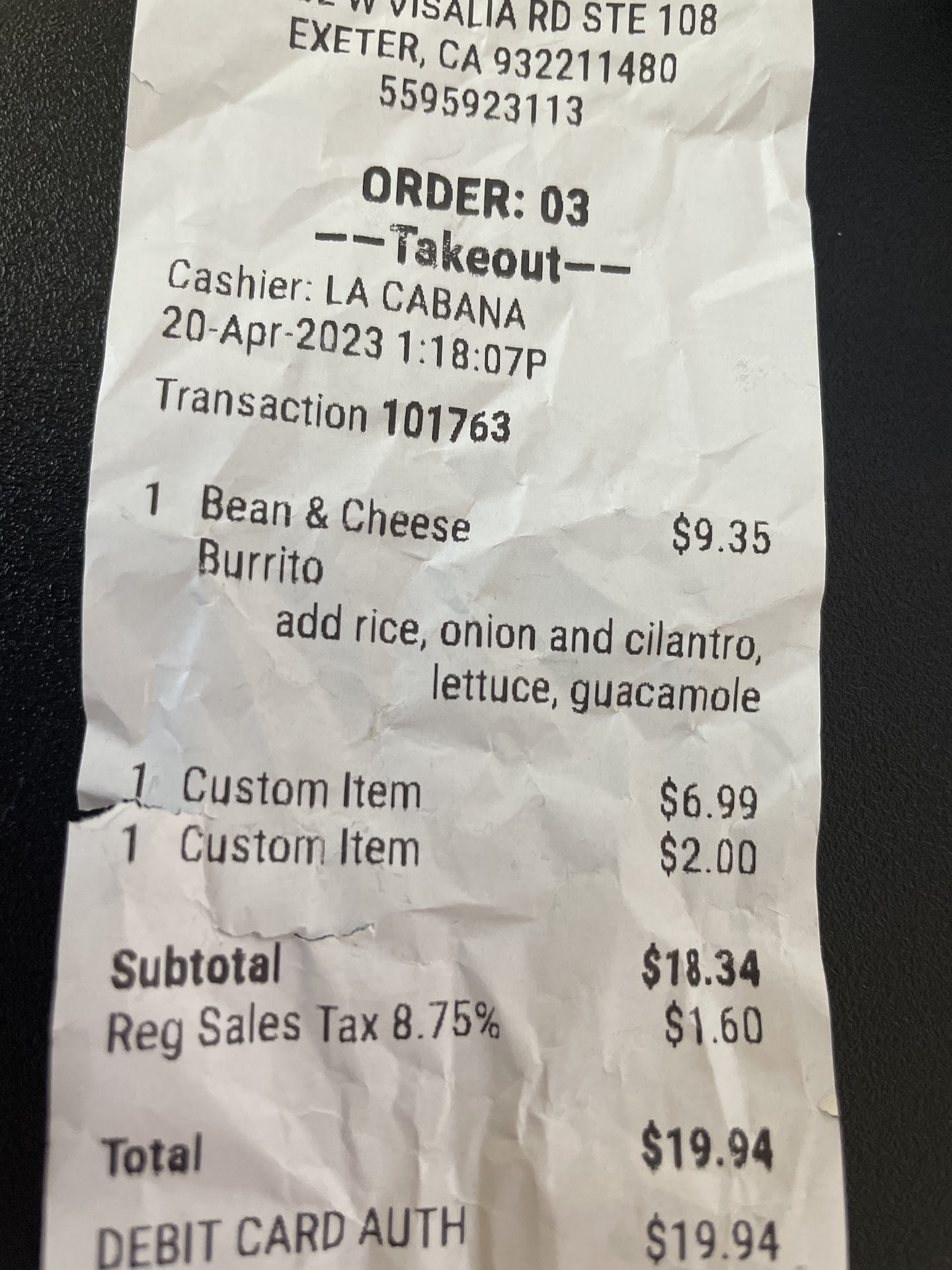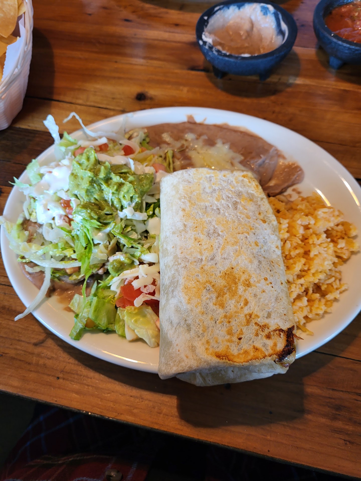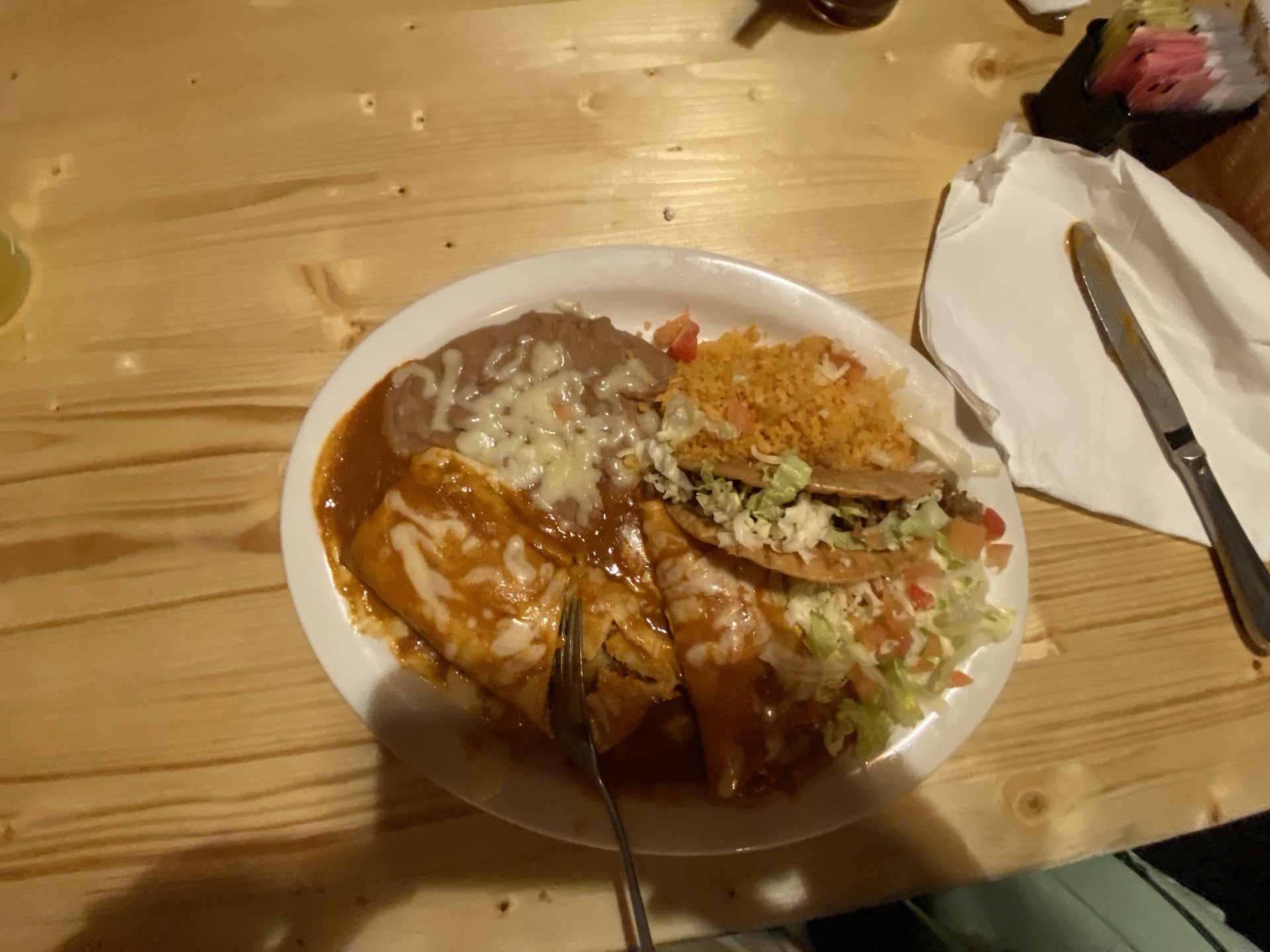 I had the Enchiladas La Cabaña with shrimp and mushrooms with a white sauce, rice and beans on the side. They were excellent as was the service. I don't come to Exeter often, but when I do come this way again, I will come back. You all should...