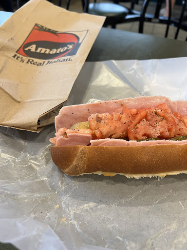 I grew up on Amatos in the Portland Maine area. So I was excited to be close to one while traveling from Manchester airport as I was starving. They seem to have everything a free standing store does. My disappointment came when they handed me my Italian. The bread was so hard and overcooked. I immediately brought it back for a remake. The girl looked at me like I was wrong in asking that. She tried to locate better rolls but with no luck. She asked the manager on duty and his dumb response was you should see the rolls for the meatball subs we use. They are much harder. I then had to fight for my money back. This place is a shame and the Realis would be disappointed to associate there name to this. Drove the hour back to Maine and get the correct way In Biddeford. I wish I had a pic of the garbage they were trying to pass off. The attached is of a...