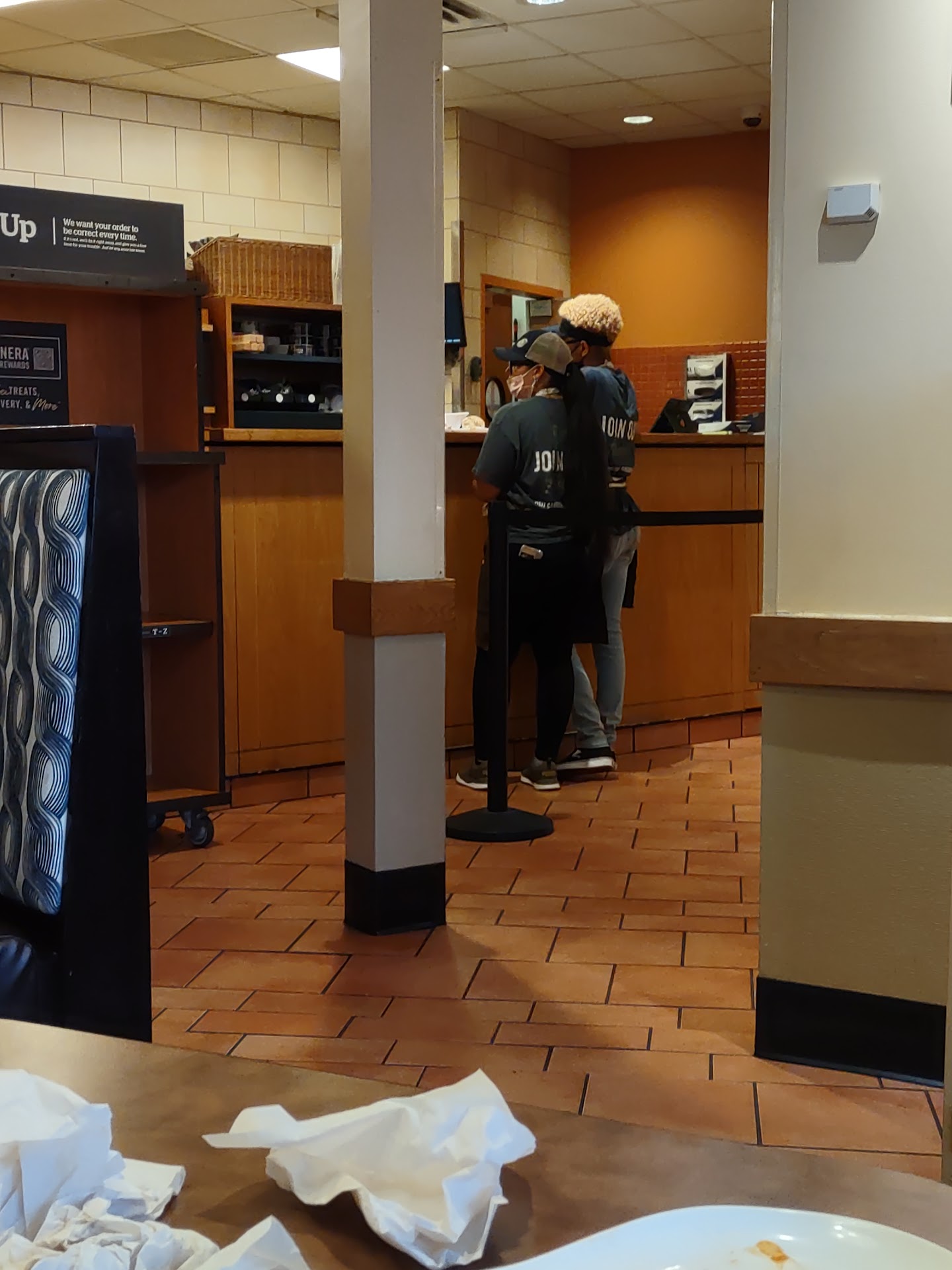 I have been coming here for years and last week I had the worst experience. After suffering food poisoning from a different location of Panera I decided to go there bc it was always a much cleaner place. To my surprise there was a hair in my soup which was not mine n my hair was completely up. When I went to the back counter where they cook n I told one of the employees Maria she was rude n did not say anything n proceeded to speak in Spanish about me. I told her I am Hispanic n understood what she was saying n there is no reason for her to get upset at me for complaining about a hair in my food. I asked for a Manager and after ten minutes one came out and didn't apologize and said nothing. I told her I wanted a soup n honestly I should get some credit as a courtesy n she finally gave me both. Also the women working there especially in the kitchen had no hair net n only had a ponytail n long hair so hair was flying everywhere which is why there was a hair in my soup. Manager needs to train her employees n Health Department should be going often to inspect this location. Stay away from this location. See picture below n see how the employee has no hair net n was previously working in...