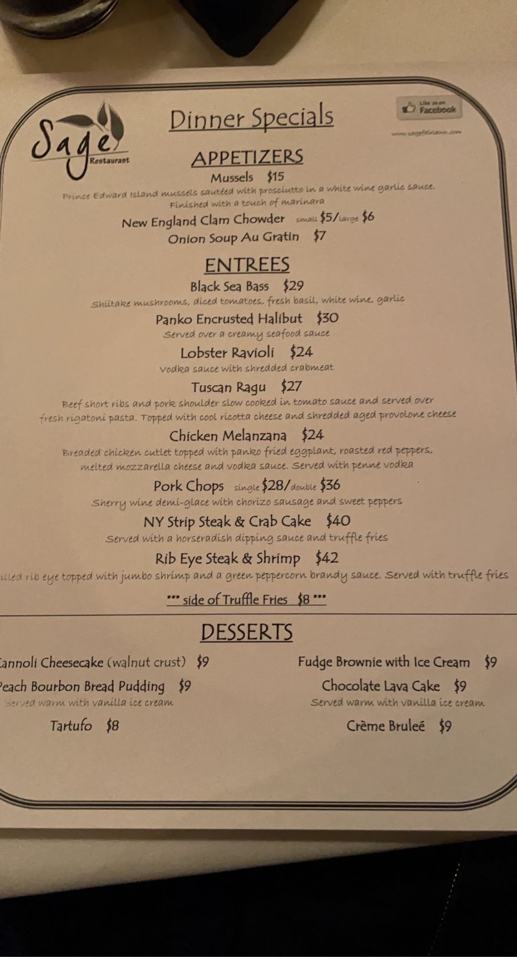 Here are some of the highlights of Sage Restaurant: