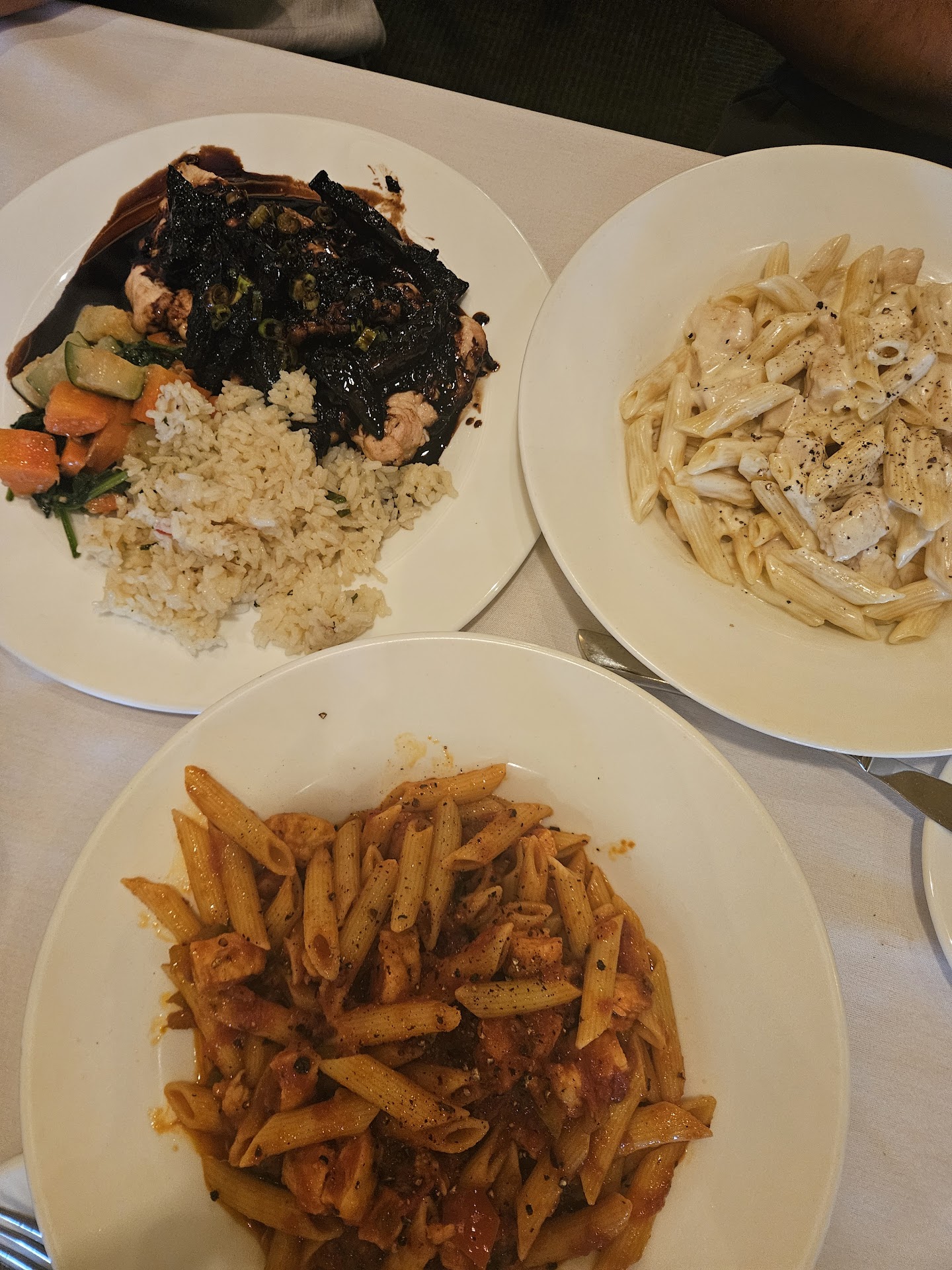 For our entrees, we had the Honey Roasted Salmon and the Tuscan Ragu. The salmon was the best we've ever tasted, with perfectly roasted vegetables that complemented it beautifully. The Tuscan Ragu was off the charts phenomenal, rich with flavors that left us wanting more.
