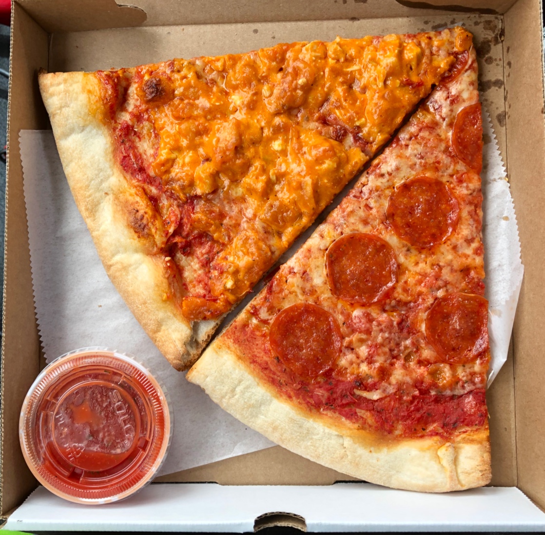 The other day I stopped by, Two Guys Pizza & Grille, for lunch. I ordered their Buffalo Chicken & Pepperoni Slices, a small side of Marinara Sauce, and a can soda. Their Pepperoni slice was really delicious. Great flavor, and the crust was thin yet crunchy. Helluva Pepperoni Slice. The Buffalo Chicken slice was really intriguing. The flavor was really good, loved the chicken, but sauce had a different color and texture to it than a typical Buffalo Chicken Slice. Iād def try it again. Their Marinara Sauce is really good as well too. Great for dipping the crust. The guy who took my ordered was really nice and attentive. Great person to have at the counter. Iād absolutely recommend, Two Guys Pizza & Grille, to anyone looking for some good pizza at a great price in the...