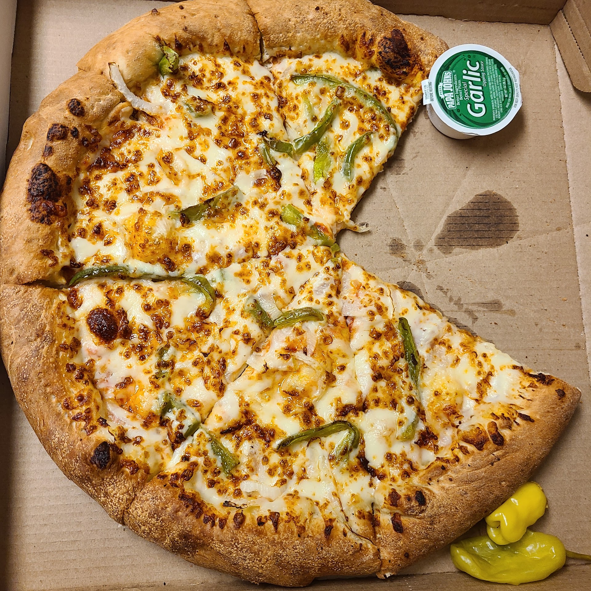 We picked up our pizza and took it home, managing to pick the pizza up a few minutes before the said ready time. But once home we found that our pepperoni was a cheese. So I tried calling the same place I ordered from and it was still a couple hours before closing. The first time I called it took them a while to pick up and when they did it sounded like they just muted the phone and set it aside. I sat on the phone for about 5 min before calling again and the phone was picked up after a couple rings but this time I could hear them pick it up, then immediately hang up on me. Obviously this was very annoying and a big disappointment as I have not had trouble with Papa...