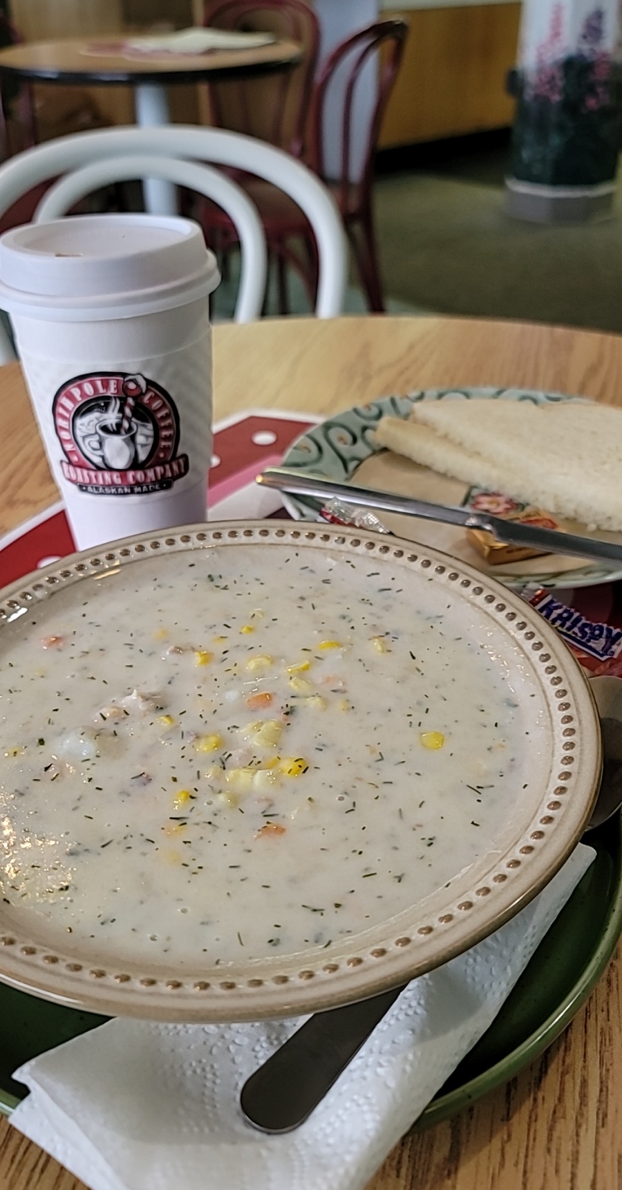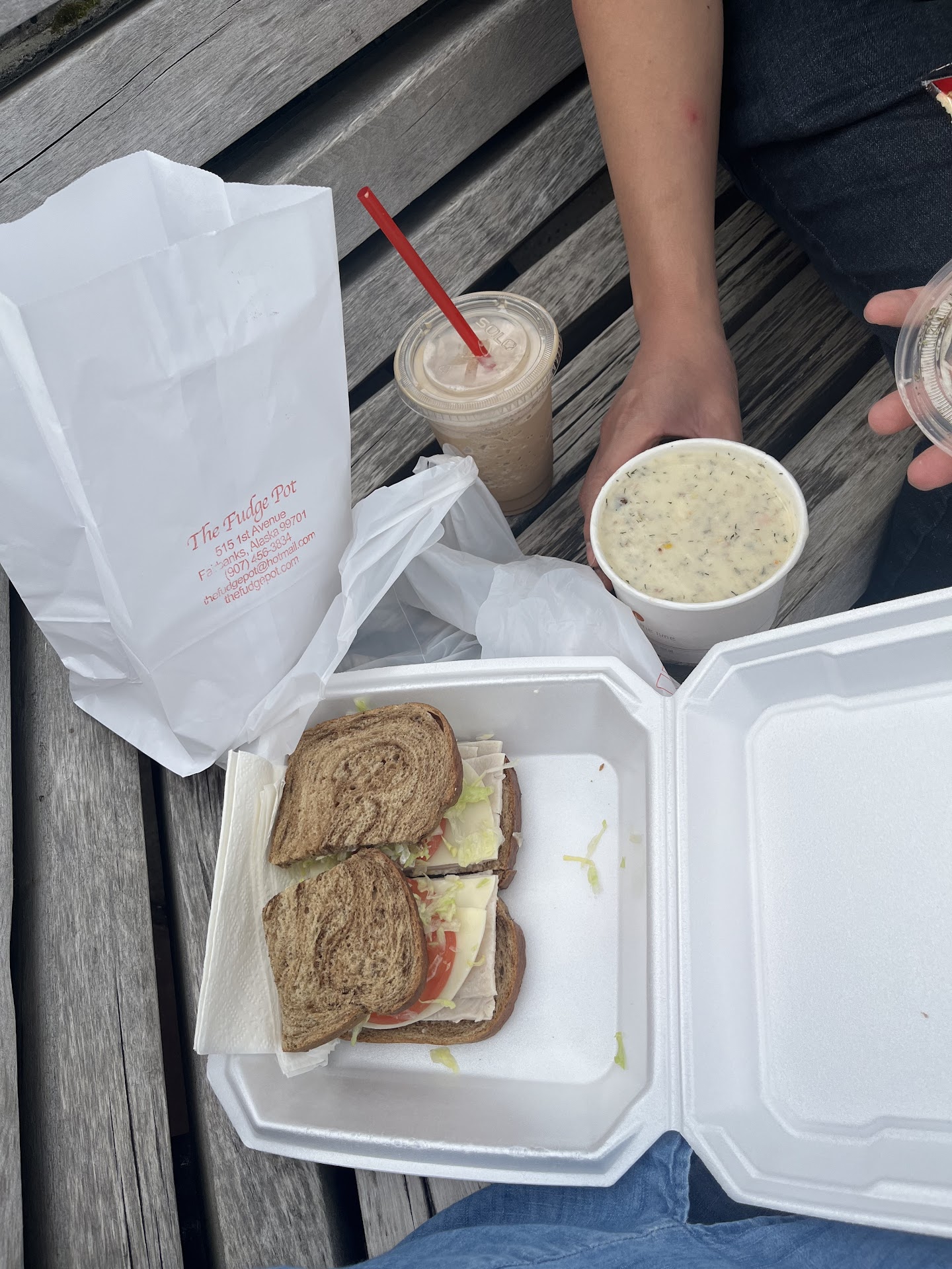 Read moreOur tour group brought us here and I was worried it was going to be a long and hectic wait due to us all descending at once. The small staff did a great job accommodating all of us! We got a turkey provolone sandwich, salmon chowder, double espresso frozen drink, and a piece of chocolate peanut butter fudge.