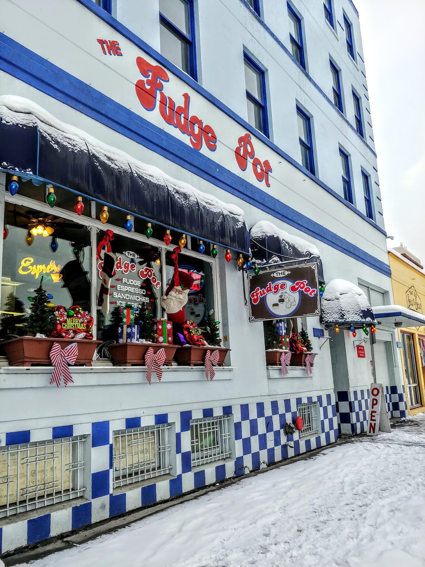 Read moreI stopped in here for lunch while my laundry was running in the hotel in staying in next door. It's a small but inviting place with a lot of dessert options available on display when you walk in. The main attraction on their shelves was the fudge that they draw their name from. But this is also a coffee cafe, eatery and a small gift shop. I browsed through the store briefly while the customers ahead of me made their order. For my lunch I had the soup of the day - salmon chowder. I also had their fuzzy moose latte, which was flavored with mocha, caramel and almond if I recall correctly. Both were very good! I cleaned up the last bits of the chowder with two triangle slices of homemade sourdough bread that I had ordered extra. I enjoyed being able to look out the window while I dined here. I would recommend this place to anyone looking for a pleasant lunch or a great coffee. I did not try any of the desserts they...