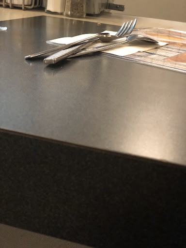 even the one counter we actually found to sit at was sticky and stained with butter from the last guest.
