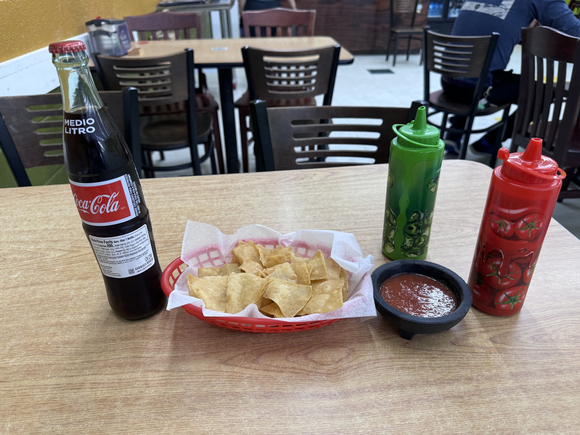 The restaurant is in the back corner of El Amigo Supermarket. I arrived in the early afternoon on a weekday and there were a few people there. I was able to order right away and decided to have a torta and a coke. After I had paid the nice lady at the register asked if I wanted chips and salsa - at first I was confused because I had already ordered and paid and the place didnât seem like the kind of table service restaurant where youâd usually get that complimentary, but it was! Nice touch.