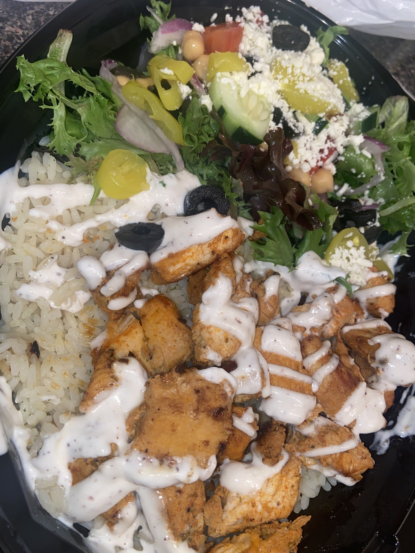 My platter was absolutely delicious. Everything on it was a 10 out of 10. So much so that I want to go back tomorrow. LoL!!!!! The chicken was tender and had the perfect char-grill to it. The salad was fresh and tasted amazing with the Greek dressing. The pita bread was fresh almost as if it was recently made and paired well with the chicken and the salad. Next time I’m asking for extra pita bread. LoL.
