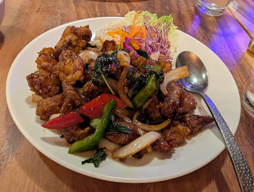 Read moreWent for a Valentines dinner and had a great meal. We ordered the rolling duck roti, tom yum soup, and the nua num tok (spicy steak salad...my fave!) for appetizers. They came out quickly and were all so good. We also ordered chicken pad thai and pork drunken noodles, which were both among the best we've ever had, and with huge portions. The service is attentive and fast considering there is really just one server and two other staff helping bring out the dishes. Prices are what you expect given inflation today, but we thought it was a good value for all the wonderful food we were served. The interior is well decorated considering the dining space must have originally been designed as an atrium restaurant for a 1980's hotel. Can't...