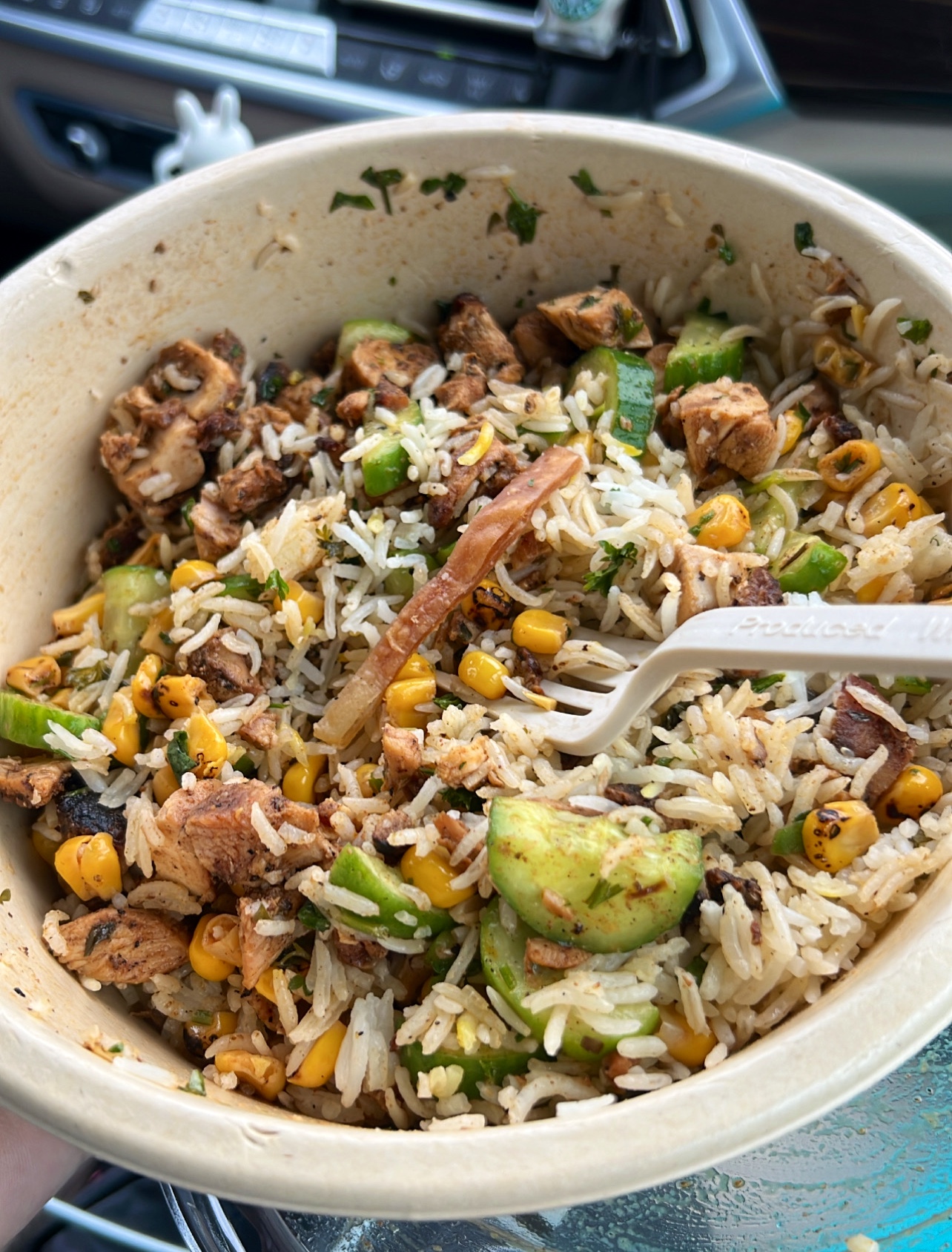 I'm sitting here looking at this bowl of rice and my old stale cut of a pita wondering, dang, why did I even pay $14 for this?