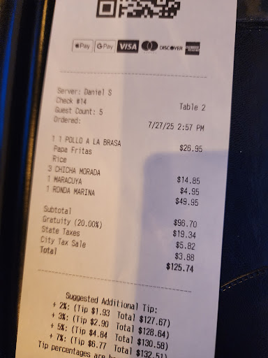 Read moreWe’ve enjoyed Chilcano’s since they opened in Seven Corners and finally tried the newly opened Fairfax location! My mom is Peruvian, and my family and I have been to Peru multiple times, always missing the food most when we return to the US. My husband and I had Pisco Sours but with maracuyá (delicious), and the kids got lemonade, which was fresh! We started with the anticuchos (beef heart), which we all devoured. My 8-year-old assumed it was steak, and it was so tender and smooth that she couldn’t even tell it wasn’t - she ended up eating half of the appetizer. I had Ceviche and my husband had Lomo Saltado. If you can handle spicy, be sure to get your entree with the rocoto sauce! Both of us really enjoyed our entrees, and the ceviche tasted fresh. The kids shared 1/2 chicken and two sides, and it was plenty. I tried the chicken, and it had really great flavor. To end, we all shared picarones…they were freshly made and HOT,...