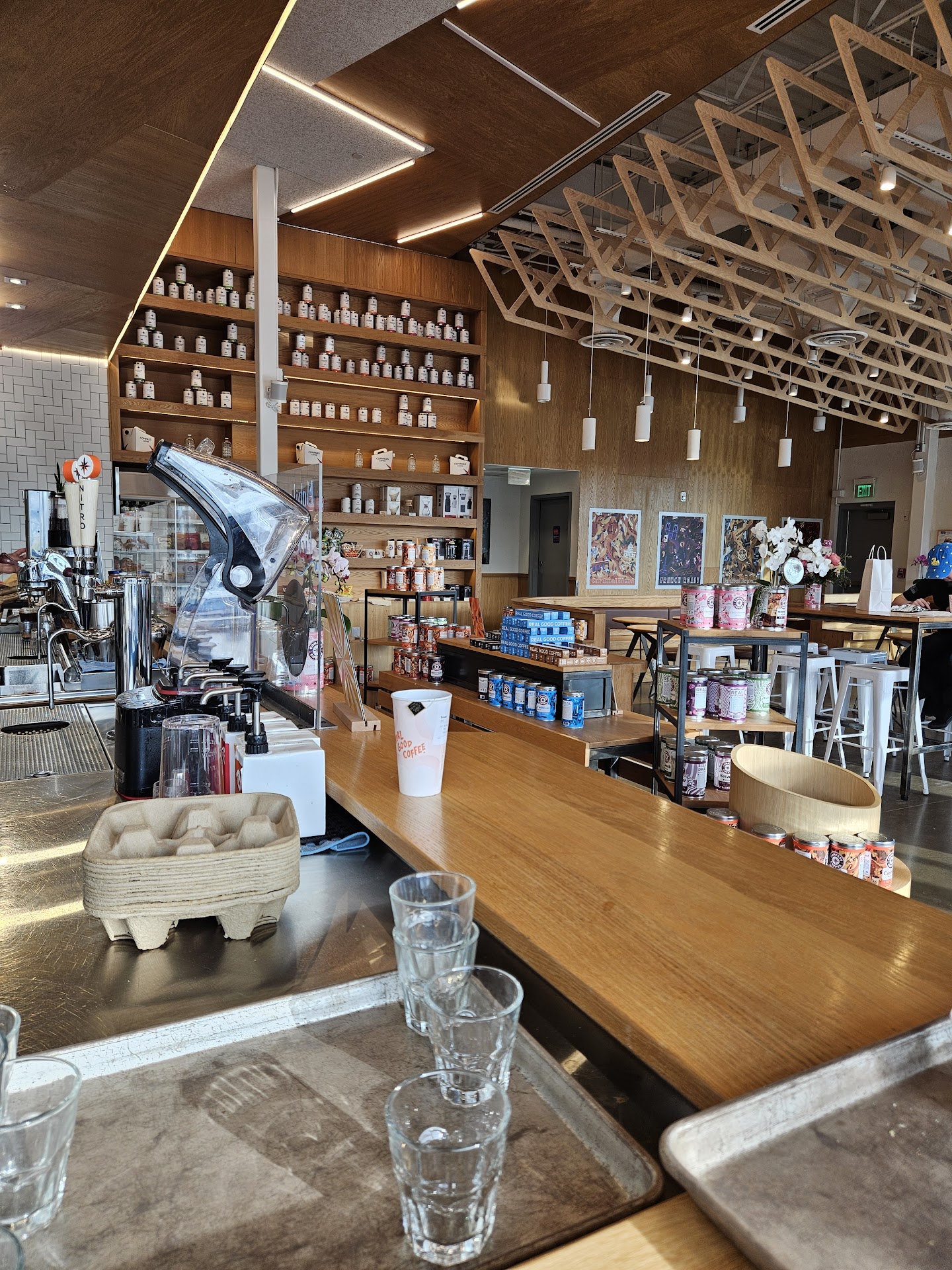 Read moreI live in Fairfax and I pass by the store everyday on the way home. It's really inviting with the contemporary design and sunlight from the windows. I swung by and got hooked. It's my place to chill on my day off now. There are plenty of seats at the coffee shop for us to sit back, relax, and chill with the cup of coffee. You can easily find the strong cold brew to light vanilla latte. They have just added the Cherry Blossom flavor which is really interesting. The staff here are super friendly and helpful. If you are new to Compass, do not hesitate to ask them for the recommendations. Sometimes the customer line is long but they handle the orders quickly with the big smile. The store is pretty clean and loaded with plants and flowers. It feels like home! They sell the coffee bean tins and you can bring the tin(s) back to refill with a discount. And you can bring your tumbler so the staff can make the coffee for you. This is really nice for environmental friendly customers. They have the apps; however, it's for IOS users at the moment. I think they are working on the Android version atm. Take advantage of their apps...