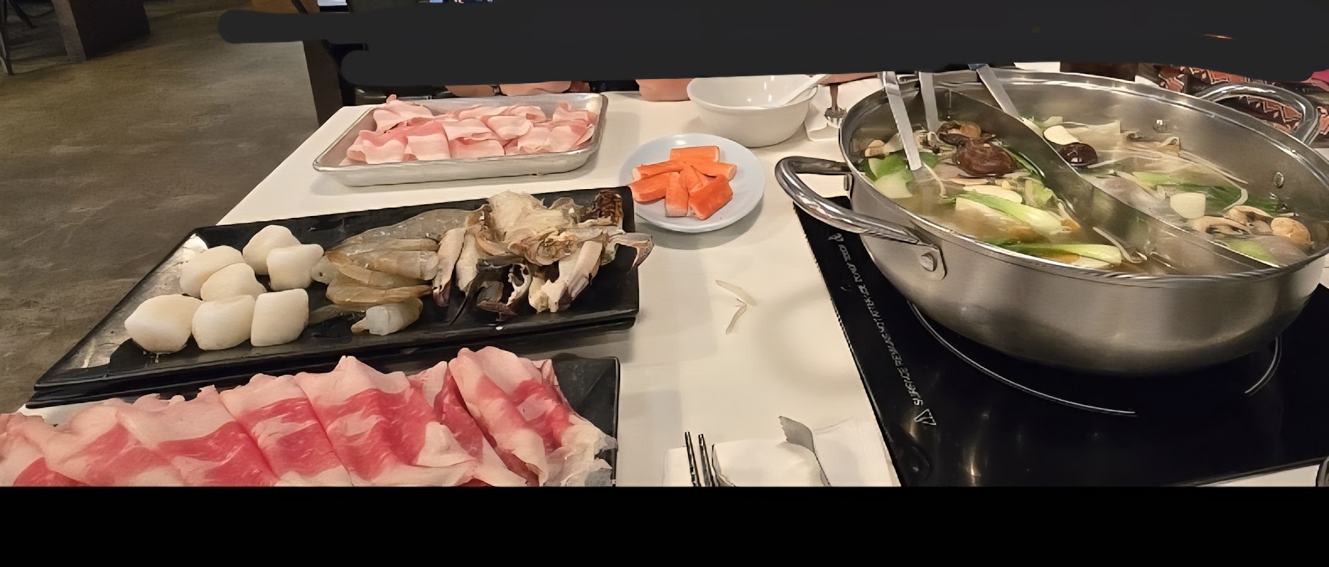 This place is AYCE hot pot. $22.99/adults and $14.99/children. It's a mix between traditional Chinese hot pot, Shabu Shabu, and even some Korean style. Asian fusion hot pot essentially. AYCE hot pot is another advantage. Uncle Liu's charges for each plate, so it adds up quick. Here, you can eat to your heart's content. However, Hot Spot doesn't like wasting food so if they see there is an excess of food left over, they'll charge. They also charge $2 if you decide to change your soup base.