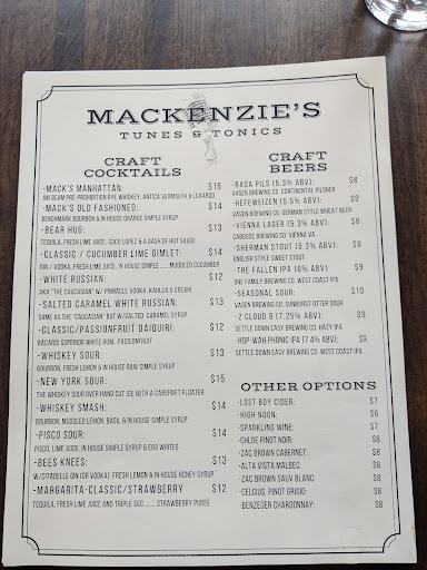 Read moreI've gone to Mackenzie's twice now and both times have been great. My first visit the bartender greeted my friend and I when we sat down. She recommended drinks and checked in on us. We were their for the open mic and the atmosphere was very welcoming to musicians and the bar patrons were pleasant as well. My second visit I was greeted when I walked in the door by Casey behind the bar. The food smelled amazing so I ordered food and it didn't disappoint. Overall, service is consistent which is great, I like the atmosphere and the food. I look forward to making the trip the...