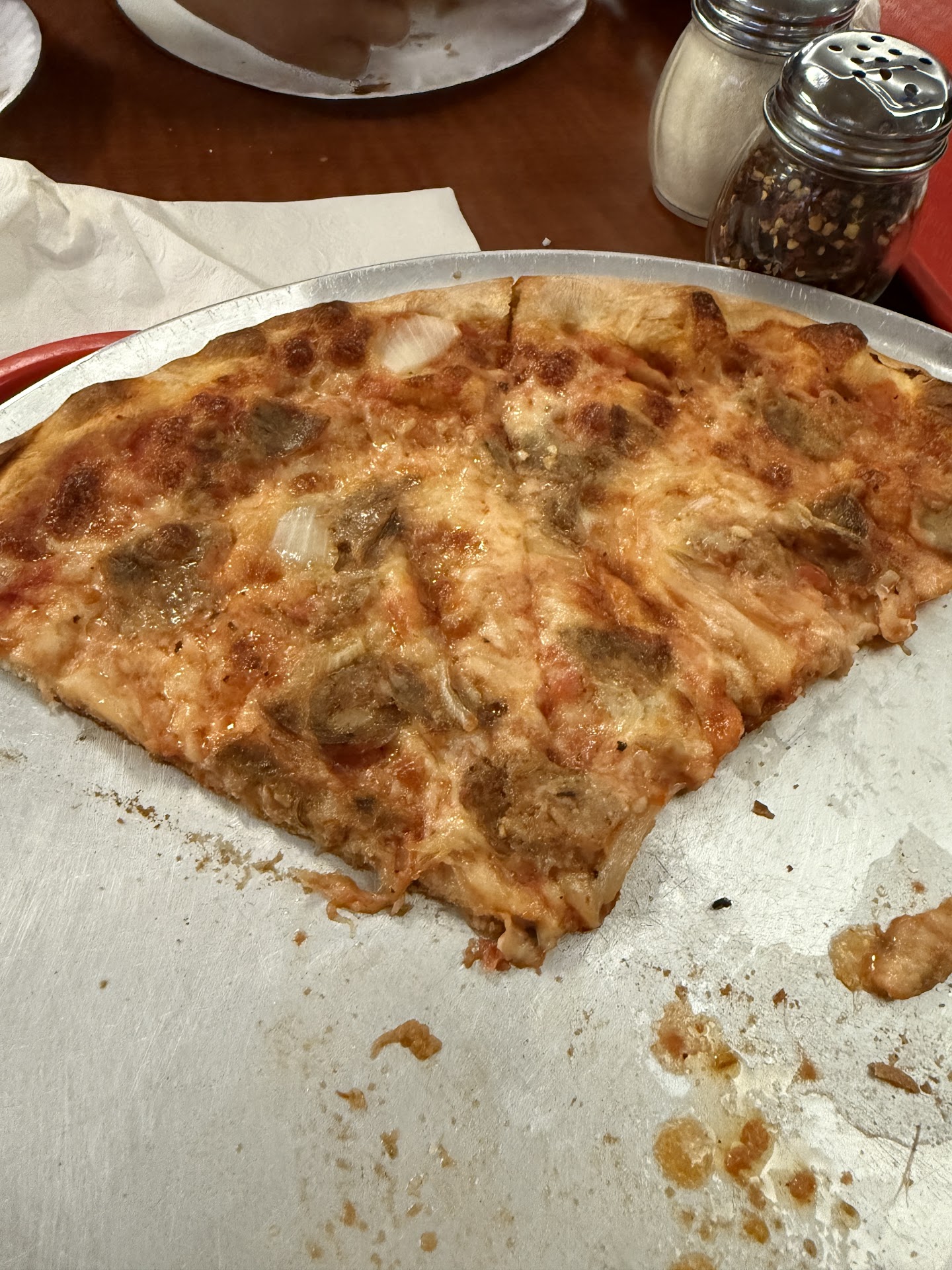 If you get a full pizza it comes out a little better. But the dough does not stand up to the cheese and gets pretty soggy. The mushrooms used are canned, work very poorly for a pizza, and should be avoided. The flavor of the pizza is otherwise fine.