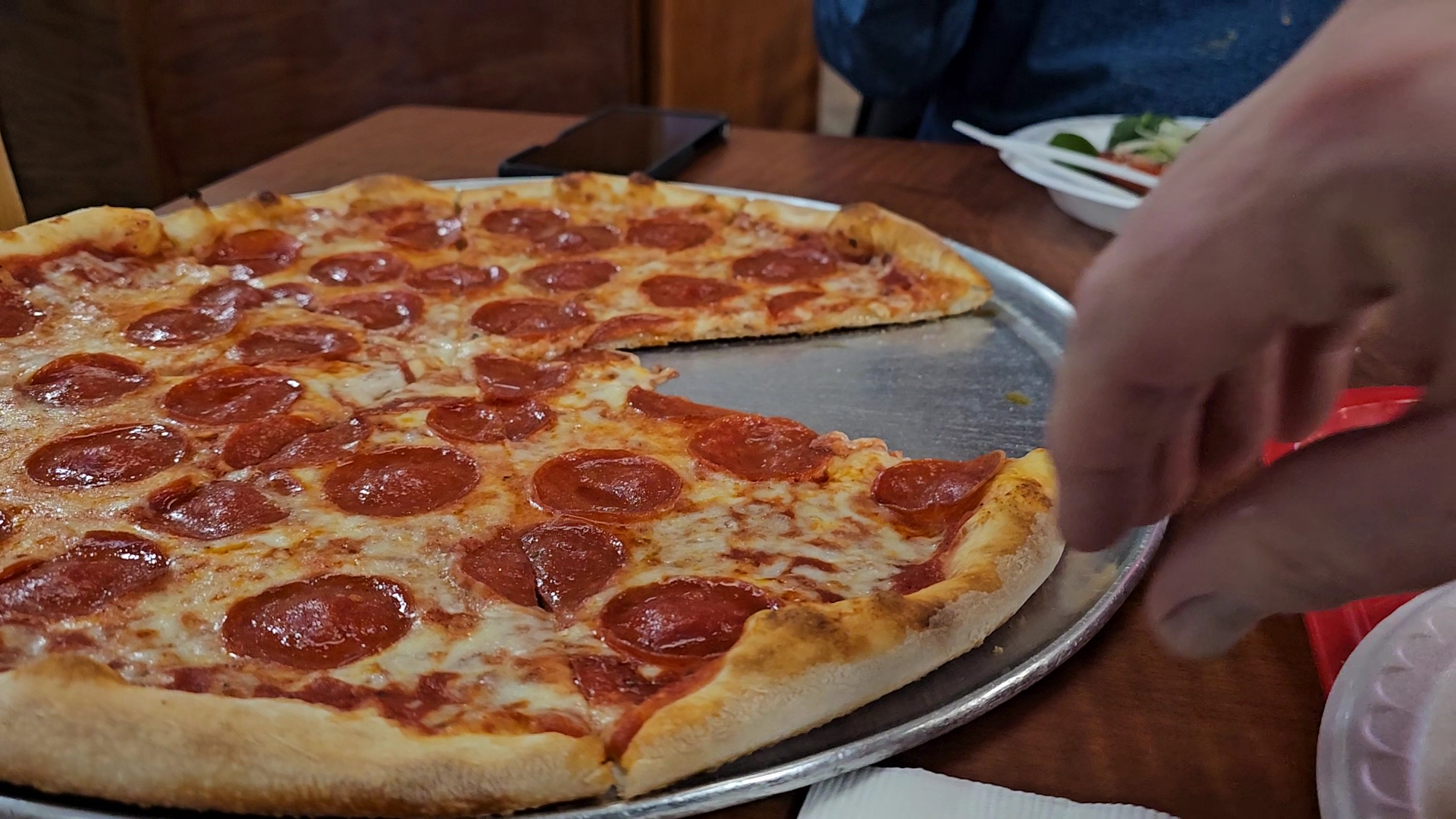 Overall, the pizza is alright if you buy a whole pizza and bad if ordered by the slice. The salad is ok.