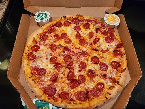 This is a clean take-out storefront. I don't give 5 stars for atmosphere because these kinds of places have no ambience, but the staff is friendly and helpful, my carry-out order was done before the given time, and the pizza we ordered, Ultimate Magnifico because the better half loves pepperoni and sausage, was very tasty, all the ingredients were great, and the cup pepperoni were amazing. We will be back for sure, we already have our eye on other pizzas and some of the hot subs. I did have a bit of trouble ordering. You can't bring up the menu without starting an online order. And, the app told me that the location I picked was not taking "deferred time orders," which is actually what every order is, I wanted ASAP and the app would not let me, told me I needed to pick a time, and then did not give me a time option, so I had to use the website. Again, no menu without starting an online order. All that said, I repeat, the pizza was great, and the staff...