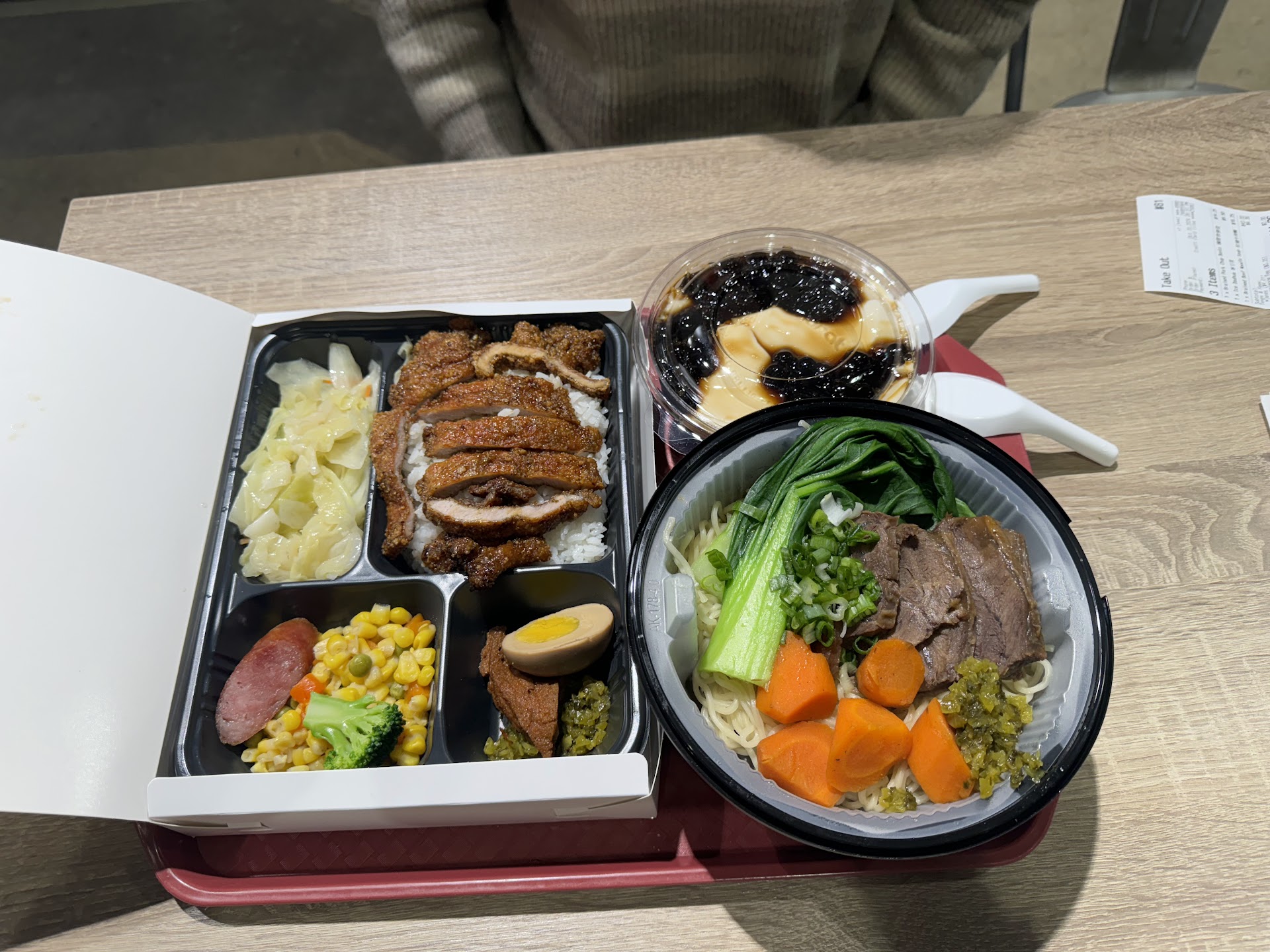 The beef noodle soup was a bit salty for us, but still more acceptable than most American food. After adding some warm water, it tasted amazing. The braised pork chop bento was incredibly tasty. We’ve already had dinner here three times and will definitely come back! It would be perfect if they provided utensils for dine-in and slightly...