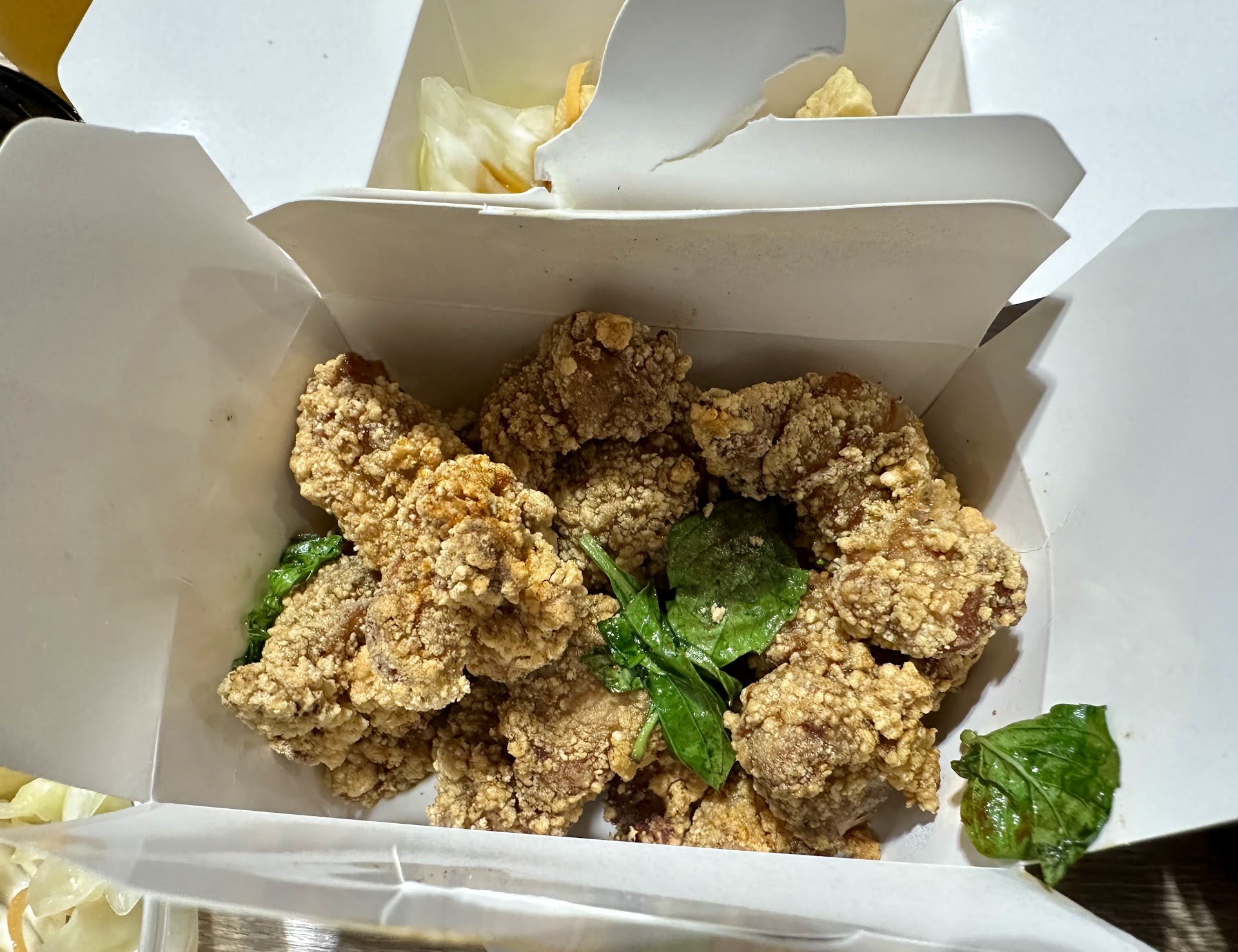 We had the popcorn chicken, stinky tofu, and the hotpot. The chicken and tofu were okay, but the taste could be improved. They didn’t have instant noodles for the hotpot, so the staff gave us a tea instead.