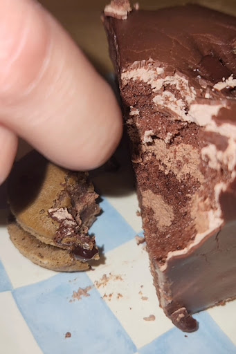 I bought two slice cakes today at Fairfax, VA for valentine; Ganache Cream Cake Slice and Mocha Cake Slice. I took a couple of bites of Ganache cream cake and then noticed what looked like a strand of hair in the cake. It wasn’t just on the surface or stuck to the frosting, it was embedded between the layers. This means it got in during the production process, not just during packaging. I couldn’t eat the rest of that piece and had to throw it away. How does hair even end up in the manufacturing process?