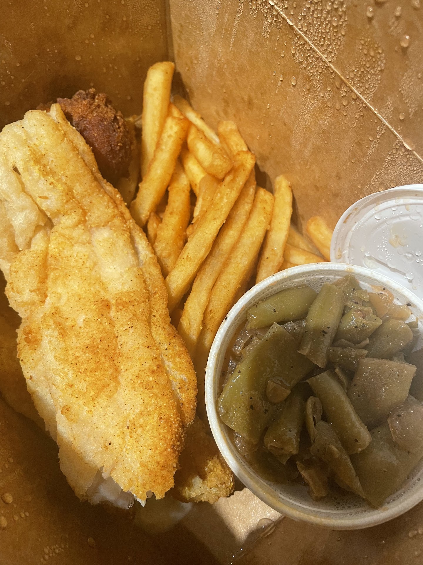 I ordered brisket, ribs, macaroni and cheese, green beans, hush puppies, and French fries. The brisket, fries and hush puppies were good. But that was all.