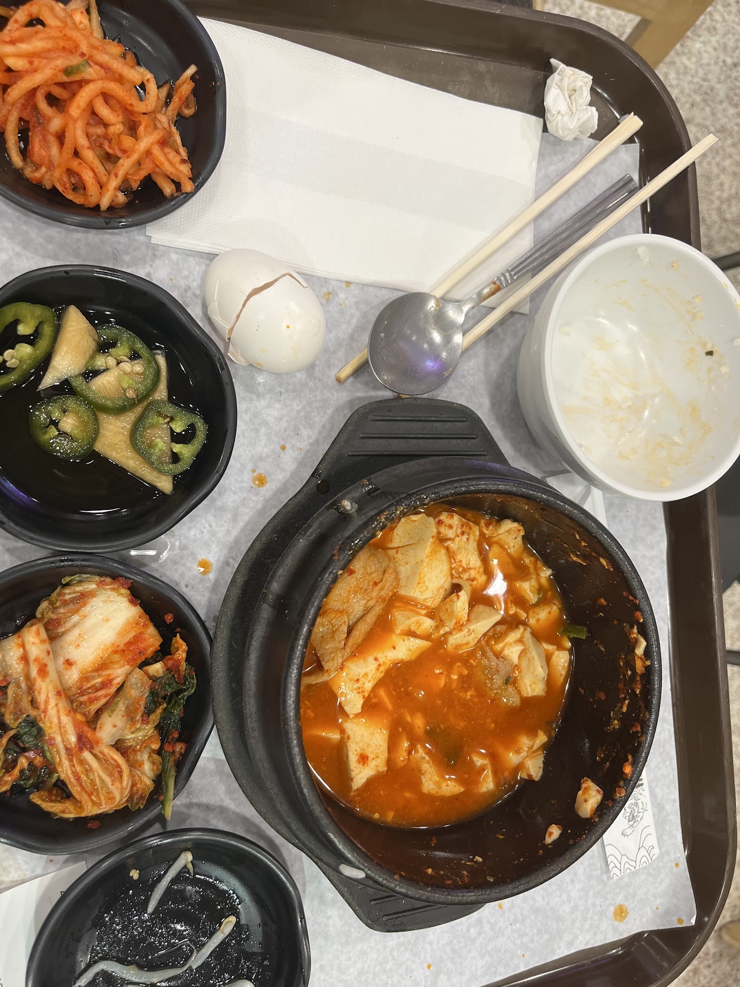 Read moreI went to this restaurant to order food for someone sick and craving its dishes. Although I had never dined there and was skeptical about the quality, it turned out that the food was great! I ordered soft tofu soup with noodles, grilled croaker, and spicy pork, and although I felt the overall price was a bit high compared to others with similar options, the food was delicious, and the quality was excellent, which made up for it. They also gave me a lot of side dishes. It looks like they have several vegetarian dishes as well. If one wants to dine at the food court, there are tables in front of the restaurant that are shared with other restaurants in the food court. I can't wait to try different...