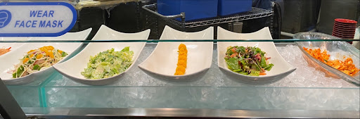 Vibe: 4/5. Sushi On is located at one of the entrances of Fair Oaks Mall. The dining room is massive, easily accommodating both large and small groups. The buffet is located in the center of the restaurant and is broken out into several different sections based on the type of food. You have a sushi area, a Japanese food, Chinese food, Korean food and dessert bar.