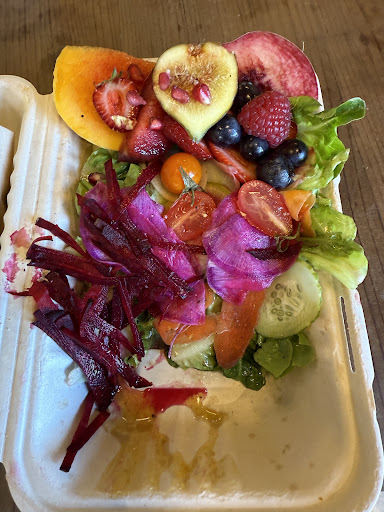 As if this sandwich was not enough, she served it with a generously sized salad of again, the freshest ingredients imaginable. You might think ‘oh, sometimes places will throw some lettuce/ cherry tomatoes on the side and call that a salad’. NOT HERE! Fresh greens, piled high with beets, cabbage, tomatoes and cukes, apples and pears, snap peas that looked as it they’d just been plucked from the vine… all bursting with color and almost too beautiful to eat.