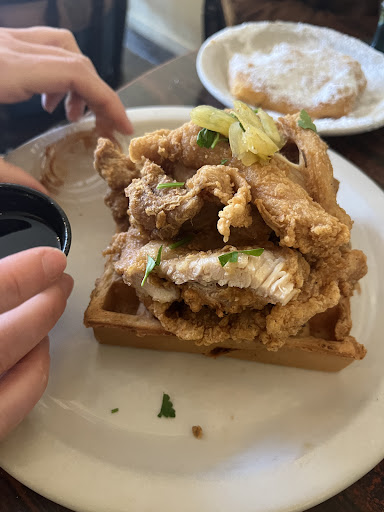Read moreAfter spending the weekend in Vegas, I was ready for some quality food back home. I was reading the reviews for brunch places around the area & was super excited to try The Hummingbird. It's a cute location. We were welcomed by the nice server and seated promptly. The place is cozy. Not to mention I was super excited to try their beignets. My friend & I ordered the chicken & waffles, the huevos rancheros & of course the beignets. Now this is when things went downhill. We waited about 20 minutes & saw our beignets at the window. HOWEVER, it was given to the table that came after us. We were not happy. A couple girls coming home from a weekend at Vegas, that got up at 4 am for their 6am flight? Yeah, not happy at all. Plus, we even overheard both servers talking about how the beignets went to the wrong table, BUT they never said anything to us. Our server avoided us the rest of the time there & passed us off to another server who, avoided eye contact but was more friendly than the other. This whole time we waited to see if the original server would apologize but they didn't. & by the way, we even overheard the other table mention they never even ordered the beignets but ate it happily. Our food finally came out & this whole time we were still waiting for an apology or a, "sorry for the inconvenience" but nothing. I had a look at my huevos rancheros & was immediately disappointed. The eggs were really runny & the salsa tasted like one purchased at a store. I was expecting it to be fresh. & the beans...do not get me started on the beans. & the garnish, was TOO much. It was more like they piled it on my food. & the hash browns were already cold. Luckily, there was hot sauce available so I made it work. So I was hoping the chicken & waffles would be the redeeming act. However, once again, garnish was not garnish. It was topped with so much green onion. But the chicken was moist. & the breading was good. & at this moment, the beignets finally made it out alive. 3 pieces of powered sugar on warm dough. Not too sweet, which I liked. But I think they should offer some Nutella on the side or even drizzle the Nutella on it. When we were finally ready to go, our new server gave us the bill & our original server made us feel rushed as she started collecting our plates while we were still sitting. Which by the way, no one cleared the tables of earlier guests until they left. What a tragedy. I probably will not be back & instead, I'll try another cute shop...