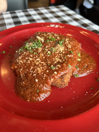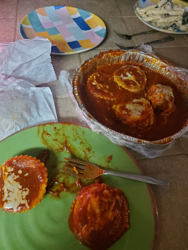 My first & last time here. The free bread brought to the table was overspiced, cold, & tough. I also expected dinner rolls, not rolls with spices. I got French fries for my kid. They were too salty & spiced with Italian seasoning, which was not mentioned on the menu or by the waitress. (I only saw these listed on the kid's menu, so I presumed they were cooked as I child would like them). Regardless, they were not hot, fresh, or crispy, like they had been in a warmer for forever. But the worst part was that I ordered the fried mozzarella ($8.50) & the menu said it was served "with" Sunday sauce. I had inquired what that was, but was never informed that it would be served on top of the cheese, instead of "with" it, per the menu. There was lots of discussion with the waitress about ranch & other sauces being served on the side, so I never dreamed that I would get a plate of sauce with two tiny cheese triangles hidden underneath it. (I thought all sauces were served on the side because of the discussion). Also, before ordering I had a separate discussion with the waitress specifically about the fried cheese. I asked how many cheese sticks there were. She said, "It's not like that." Then she gave a long explanation of how it wasn't sticks but a big slice that is cut in half for the small size and whole for the large size, but her description ended there. She never said that it would have sauce all over it. I had said I thought the item was mozzarella sticks that get dipped in sauce, so I don't know why she didn't included the rest of the description about the sauce. As close as I get to Italian is that I live in Italian, former mob-boss, Joey Naple's, old house, so I was relying on her description!
