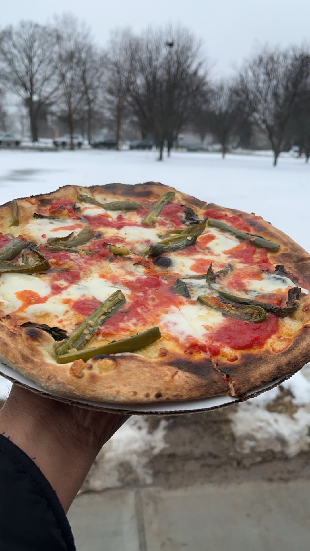 Read moreWalked over to the pizza truck for lunch a couple days ago. It was cold out, so there was no line. I asked about the hot oil sausage pizza and whether it was extremely spicy or not. The gentleman from the truck explained that it wasn't really spicy, so I ordered one up. My pizza came out hot, quick, and fresh! The service that I received definitely makes me want to return to try other varieties. I really enjoyed the pizza. The truffle fries are pretty good. Unfortunately, the chicken tenders and fries that I got today were garbage. Some of the fries were redeemable, but the chicken tenders tasted like something else was fried in the grease or the grease was old. I ended up l...