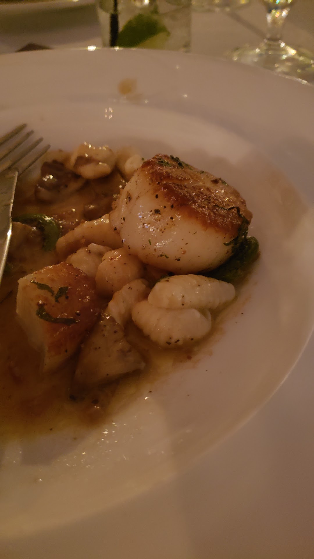 Our main courses came as we were finishing up this app. They were pretty good. We still had about 50 minutes before we had to be back home for the babysitter so we decided to have dessert because it was a special occasion. Waited about 10 mins for it but were feeling ok. Finally finished it and we waited for our check. And waited. Got our card ready so we could just pay and go. That was our bad! Got charged for 2 cocktails we did not order after we saw what got charged. Waited to see our waiter to get it fixed... and waited. Husband got up to find him and we waited some more for it to be corrected. We were told it was because we had multiple waiters so everything got a little muddled. Finally with about 10 minutes to get home in time, we left.