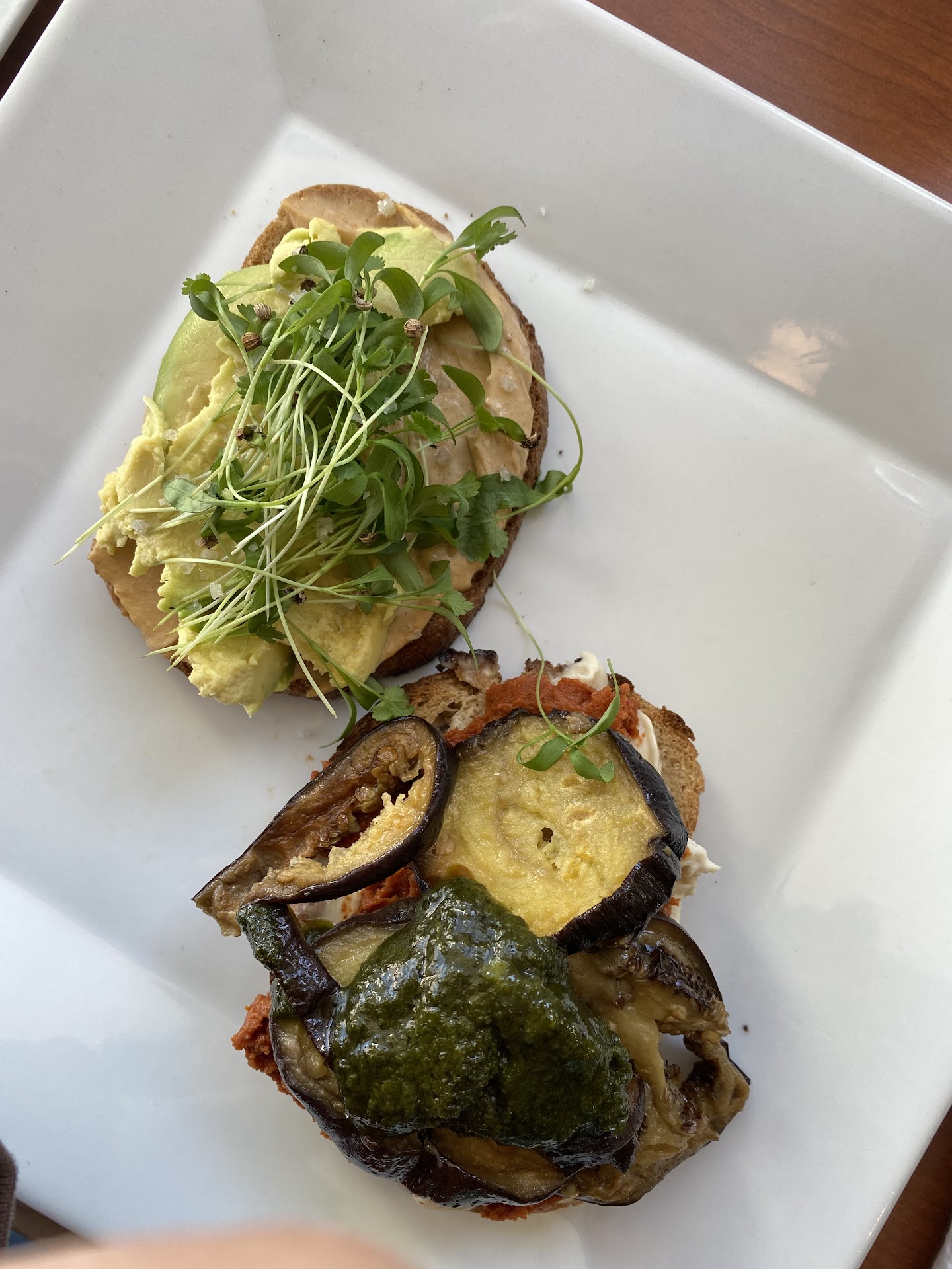 Alright — the food! Let’s talk food. : ) The first day, I ordered ”the bagel” (everything is vegan on their menu), made with cashew cream cheese…and it was heaven on a plate! It was quite filling, too. I also ordered the Peruvian Passion smoothie, which was incredible. I wanted two of them, but didn’t have any more room in my belly for another one. LOL So, the second day I ordered the bagel all over again, which was totally worth it, and opted for a warm matcha latte (with spirulina), drink instead. It was also incredible - and if you’re a matcha fan, like I am - then I’d highly recommend it. Also, on a somewhat random note, I loved the clean products that they chose for their bathroom and really enjoyed washing my hands in it. : ) If you’re ever in Fairfield, def go check this place out! Whether you’re vegan or not, it’s certainly worth a visit - or two! : ) PS I also got the tumeric fudge (brownie?), to go - the second time around, which was...