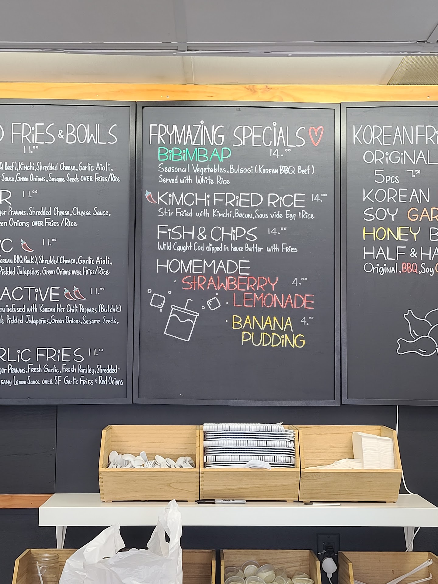 I came in on a Friday afternoon to grab some lunch for the kids and I. I ran across Frymazing on Yelp on a random search of Restaurants nearby. I don’t know even know this place existed until now. Being a fan of KFC (Korean Fried Chicken), this restaurant stood out to me. Well, I want disappointed. Their chicken was pretty “frymazing”!