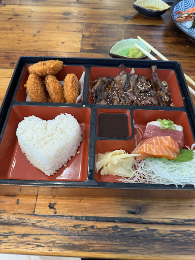 Read moreNot impressed. æȘă Got the Travis roll... the shredded grilled meat (pork?) inside tasted burnt, so the whole roll just tasted that way. Got my daughter a kid's bento... all it was was a huge mound of rice, 6 pieces of "California roll" (the main she asked for), and a mochi that was really grainy. No veggies or anything. I didn't like her roll either, it tasted very fishy for a California roll. The mizo soup we got was ok, but there was no seaweed in it and my daughter didn't even finish hers (and she likes mizo). I got a bento with grilled mackerel, orange chicken, rice, and a ginger salad. The plain rice and the salad were the best parts. đ The mackerel had no seasoning and was slightly burnt and was very greasy. The orange chicken was dry, like it had been sitting under a heat lamp for hours, and WAY over flavored with the sauce. We also ordered a Ramune and had to ask for it twice. We didn't get sick, so I give it 2 stars, but we won't be going...
