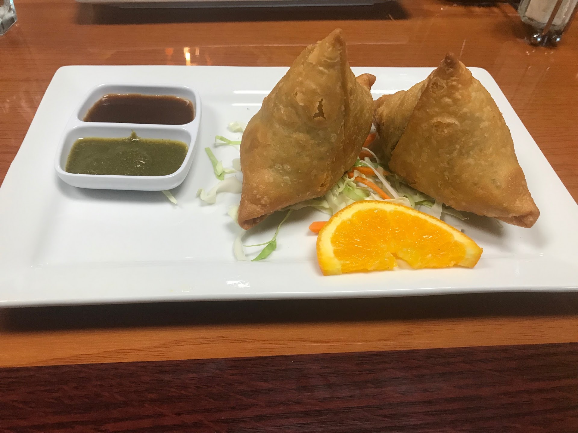 My Meal: Today I stuck to the Indian side of the menu. I wanted to try everything, I started with 2 appetizers, the potatoes pakoras, and the chicken samosas. The potatoes pakora was very good, the mint chutney dipping sauce was spectacular. But the chicken samosa was the best samosa I have ever had in my life (no kidding.) A samosa is a pastry like dough stuffed with a mashed potato, peas, and this time a chicken filling, then deep fried to golden brown. This samosa had such a delicate flakey crust, stuffed with a knock out punch of flavor filling (Best Ever!) I had the Chicken Tikka Masala and a side order of garlic naan. Very good-sized portion, veggies had a good cruch (not soggy) and the chicken was juicy and tender, and again the best Chicken Tikka Masala I have ever had!