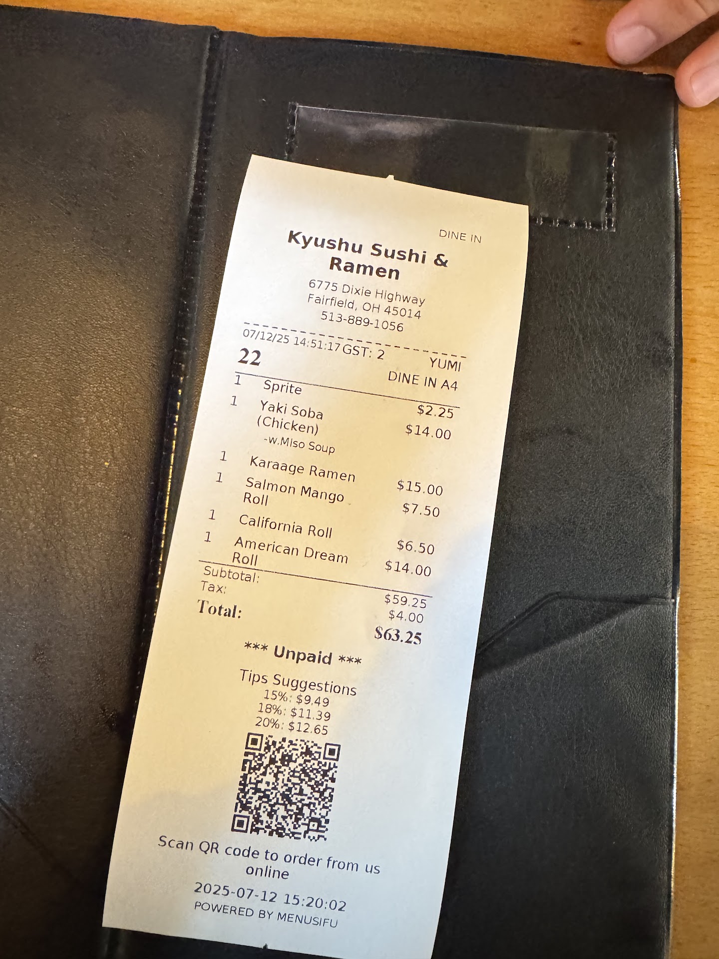 Ā Ā Ā Read moreVery well decorated atmosphere and plating. Food was delicious with well balanced flavors; creative and tasty. If dining for meal quantity I suggest the Ramen; medium sized bowls with several options. Out of the spicy miso ramen and the black garlic ramen we preferred the later for its robust flavor. I had the Eye of the Tiger roll which was delicious with an amazing texture. The Miso soup was the best I have had, though I have only tried it at one other local restaurant. While the staff was friendly and made sure the needs of the guests were met, my only knock was the quantity of sushi I received. Before I ordered, I asked how many pieces came in the roll I would be ordering; the waitress said 8-12 pieces. When my roll was deliver it was only five pieces. While the roll was a good size, I was very hungry after just finished a workout and had I known the roll size I would have ordered ramen for a larger portion meal for two additional dollars. Overall the experience was more positive than negative and my compliments went to the waitressing staff and Chief. While I was given the wrong size description, I felt the waitress simply did not know the size of each roll. I will be returning to Kyushu, but I will be prepared to spend $30 or more to get sushi as an appetizer and ramen as my meal....