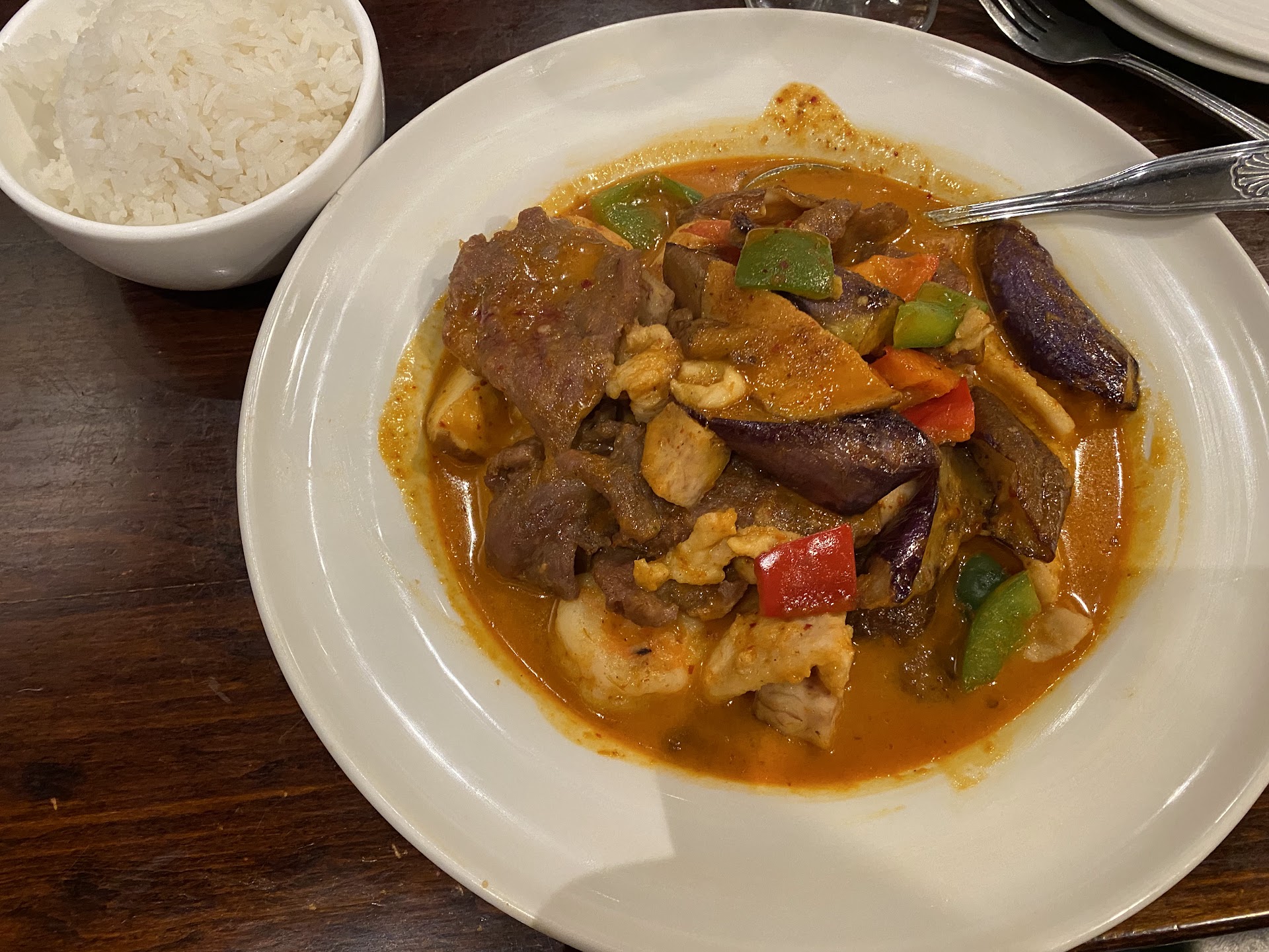We also ordered the General Tsao's chicken and Singapore shrimp curry noodles, and every plate was emptied quickly--it was that good!