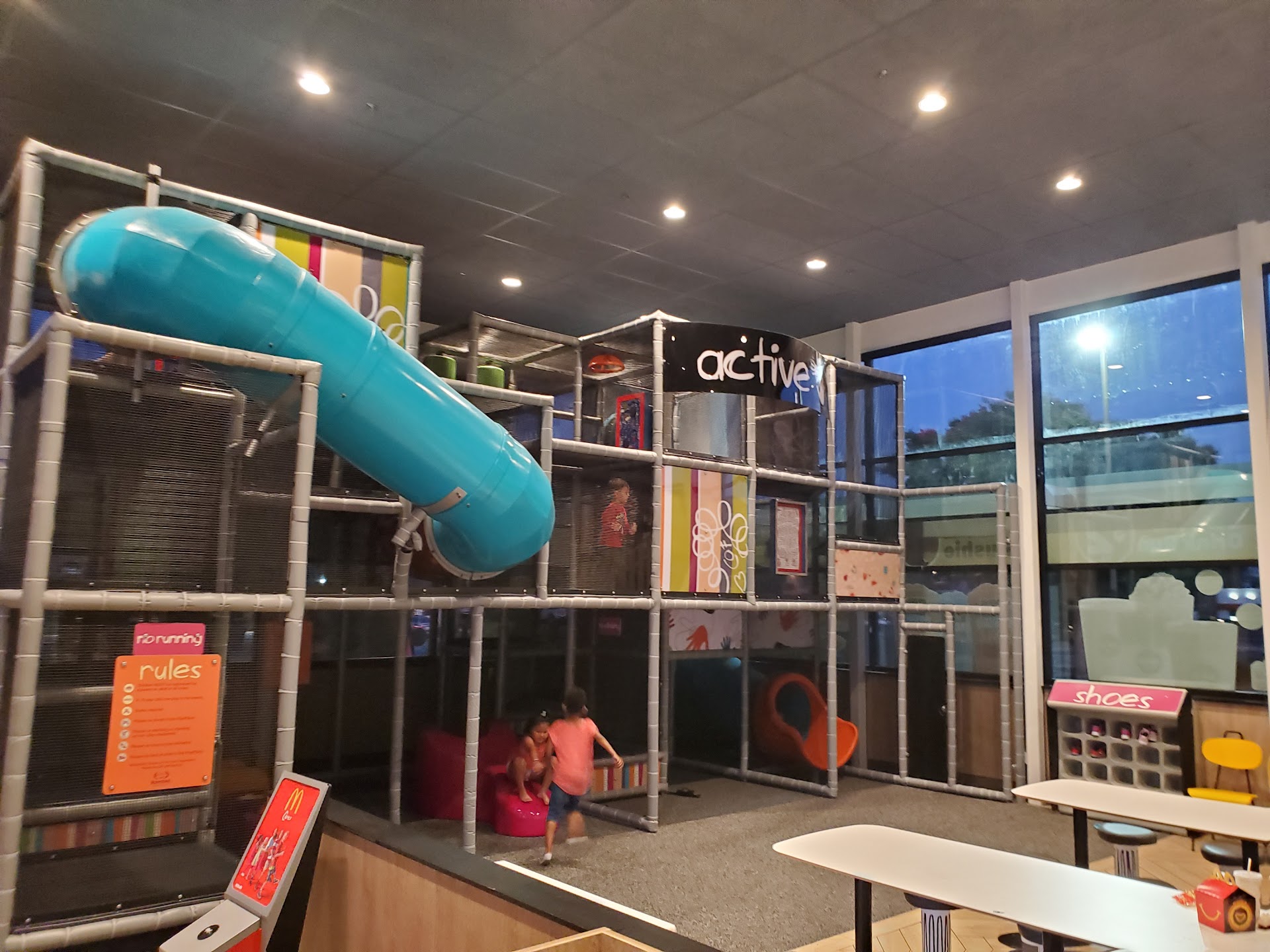 They just renovated this place so that the inside and outside looks more modern and matches the newer McDonalds around. Some of the updates include a new play area for the kids and a touch screen order kiosk.